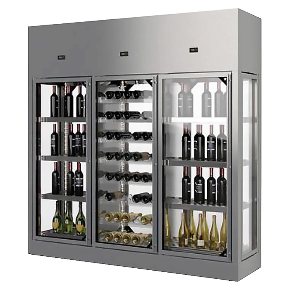 Винный шкаф Enofrigo WINE LIBRARY 3P 4V H260 P60 (A1WL4V3P266P/873) предназначен для хранения и демонстрации вина при определенном уровне влажности и температуры в ресторанах, специализированных магазинах, отелях или подсобных складских помещениях. Модель оснащена 3 дверями с фронтальной и тыльной стороны и прозрачными боковыми стенками. Корпус выполнен из ламината, боковые стенки - из стекла, рамы дверей - из анодированного алюминия, двери - стеклопакет из низкоэмиссионного стекла, ручки - из нержавеющей стали.