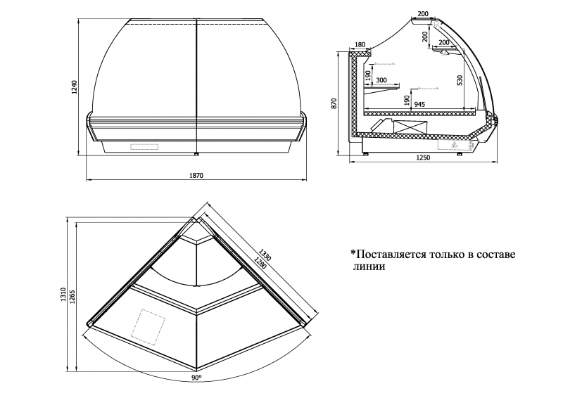 | Вес (без упаковки)180 кг | Конструкцияс гнутым стеклом | Напряжение220 В |