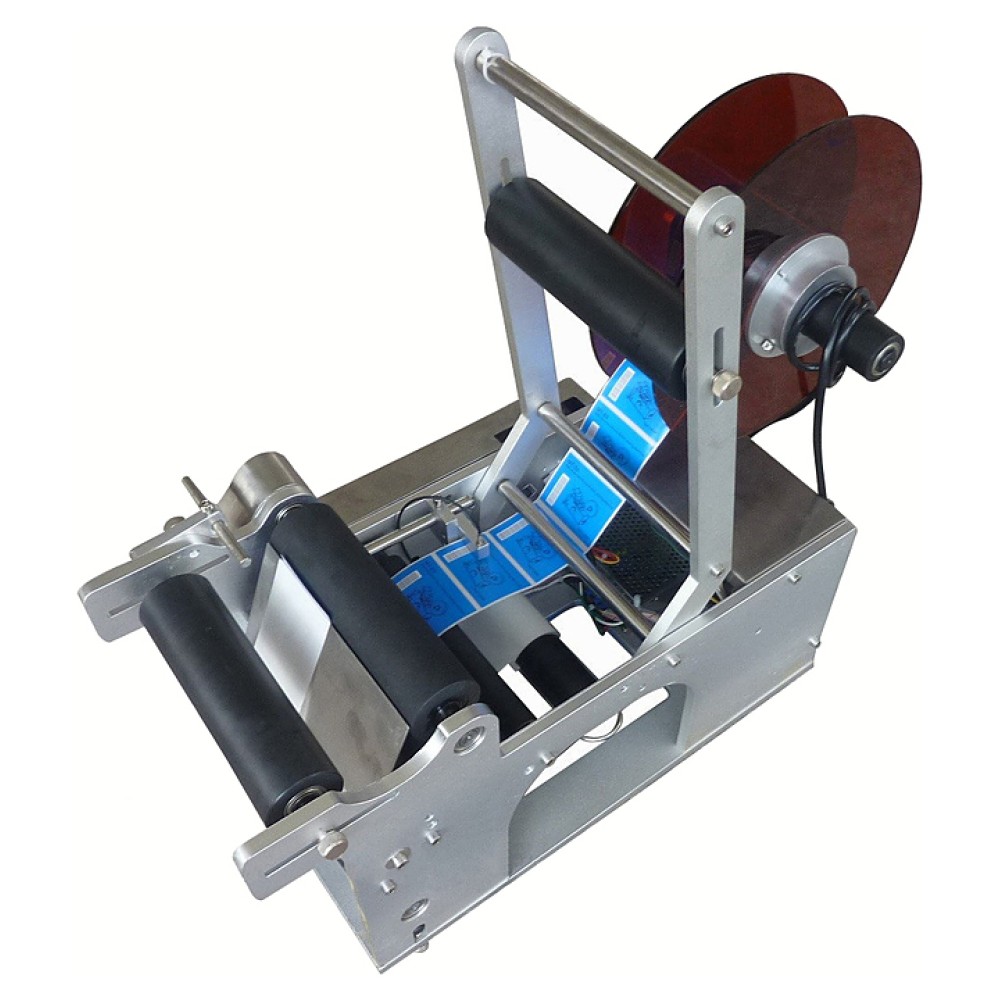 Полуавтоматический этикетировщик Hualian MT-50 используется на производственных площадках, предприятиях пищевой, фармацевтической, химической, косметической промышленности для нанесения самоклеющейся этикетки на круглую тару. Оператор помещает продукт на валики, затем закрывает упор и аппарат автоматически прокатывает, одновременно нанося этикетку на продукт.