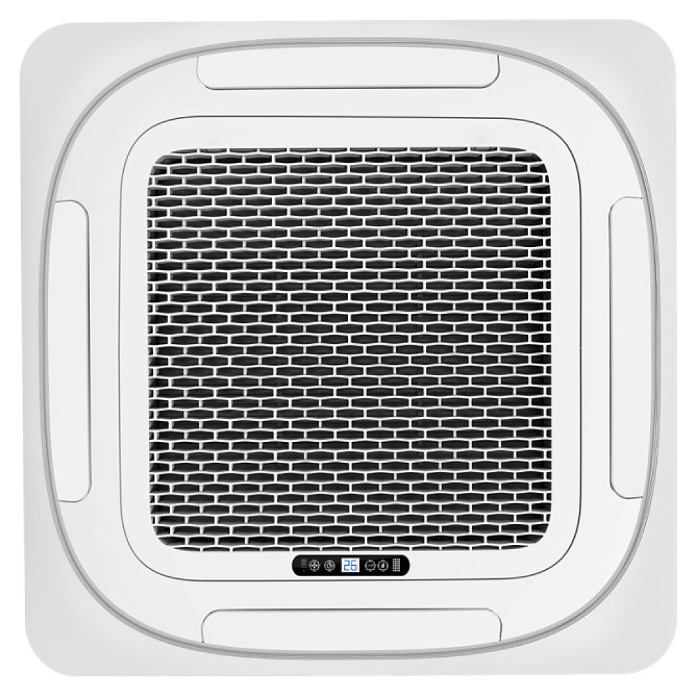 Кассетная сплит-система EXPERTAIR ZAC-HR60XCAC-IU / ZAC-HD60XC-OU / ZAC-PAN-HR24/36/48/60 серии HARD используется для создания максимально кофмортных условий микроклимата в жилых, административных, производственных и коммерческих помещениях. Модель состоит из внутреннего блока кассетного типа ZAC-HR60XCAC-IU, наружного блока ZAC-HD60XC-OU и декоративной лицевой панели ZAC-PAN-HR24/36/48/60. Наружный блок оснащен теплообменником, трехлопастным вентилятором, защитными вентиляционной решеткой и крышкой для сервисных вентилей, внутренний блок – теплообменником, вентилятором и электронным блоком управления с жидкокристаллическим дисплеем индикации, лицевая панель – воздухозаборной решеткой и 4 подвижными направляющими воздушными заслонками, пульт – информативным жидкокристаллическим дисплеем и кнопочной клавиатурой. Лицевая панель выполнена из пластика с поверхностью белого цвета, корпус наружного блока – из стали с антикоррозийным покрытием белого цвета, корпус пульта – из ударопрочного белого пластика.