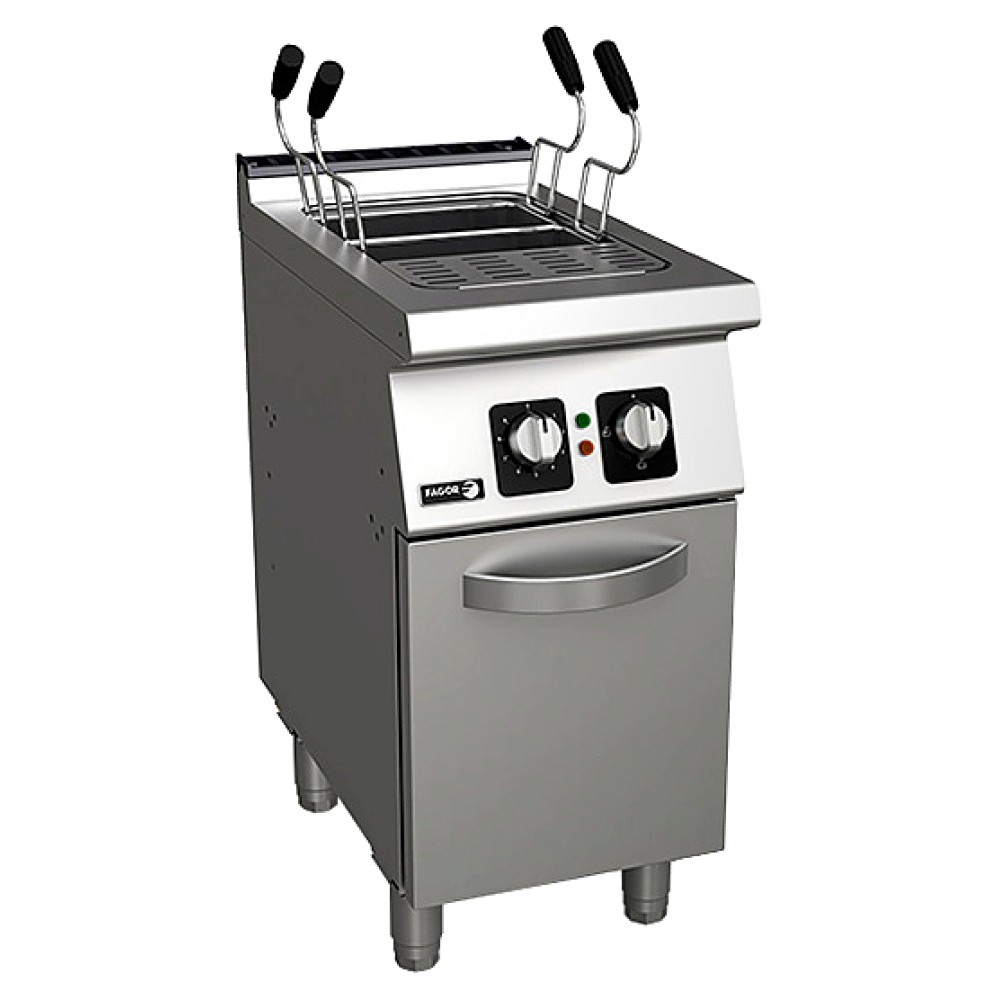 Макароноварка Fagor CP-E7126 предназначена для приготовления всех видов макарон, а также овощей, риса, яиц и других продуктов на предприятиях общественного питания и торговли. Модель оснащена регулятором мощности, встроенной в столешницу ванной и 2 корзинами с ручками. Столешница и нагревательные элементы выполнены из нержавеющей стали AISI 304, ванна - из нержавеющей стали AISI 316L.