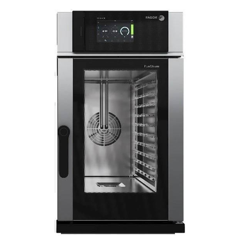 Пароконвектомат Fagor K-APW-101-E LW R K предназначен для приготовления огромного ассортимента самых разнообразных блюд, а также для выпечки хлебобулочных и кондитерских изделий в столовых, кафе, ресторанах и на предприятиях общественного питания и торговли. Модель оснащена электронной панелью управления, сенсорным экраном с диагональю 10,1" и термощупом. Корпус выполнен из нержавеющей стали.