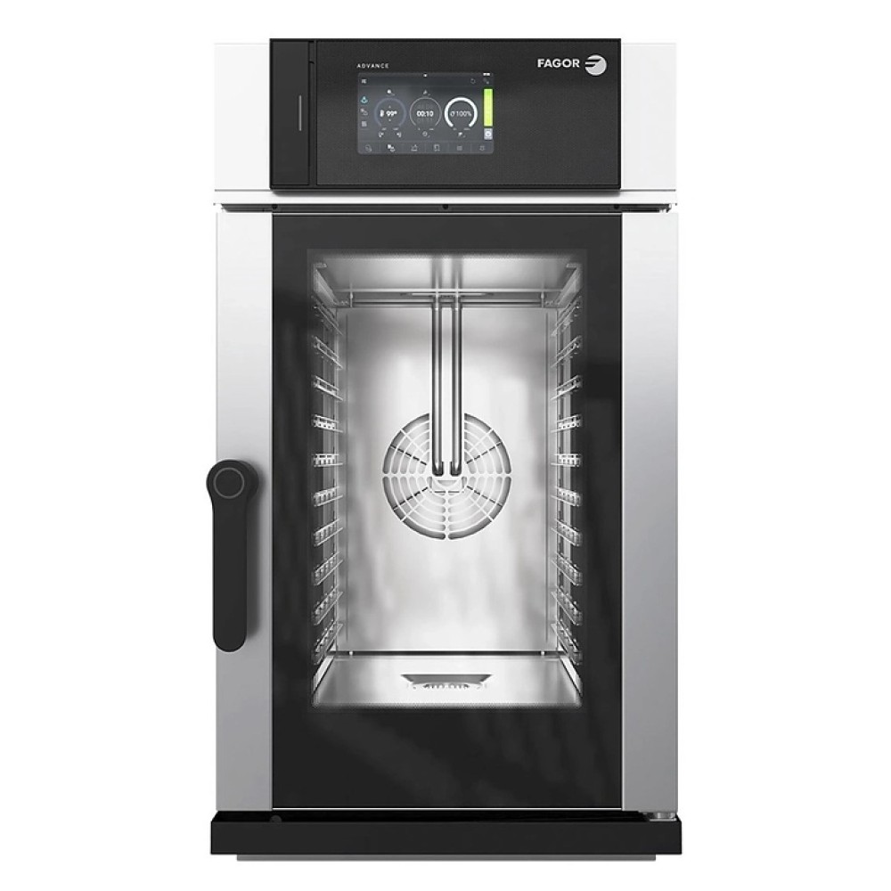 Пароконвектомат Fagor K-APW-101-E SW R K предназначен для приготовления огромного ассортимента самых разнообразных блюд, а также для выпечки хлебобулочных и кондитерских изделий в столовых, кафе, ресторанах и на предприятиях общественного питания и торговли. Модель оснащена электронной панелью управления touch-screen с диагональю 10,1", 4-х точечным термощупом и регулируемыми по высоте ножками. Корпус и камера выполнены из нержавеющей стали AISI 304.