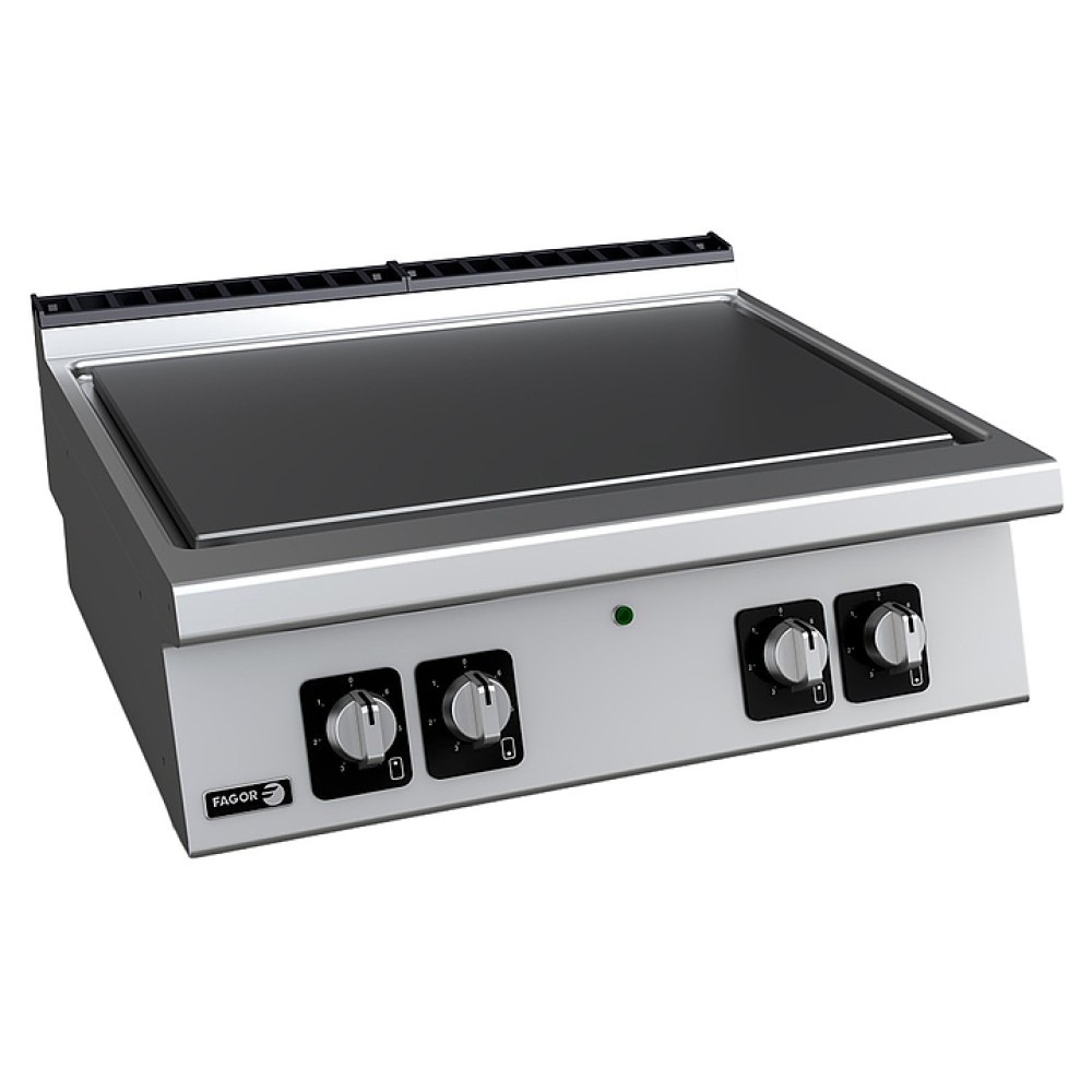 Электрическая плита Fagor C-E710U предназначена для приготовления различных блюд в наплитной посуде на предприятиях общественного питания и торговли. Модель оснащена термостатом, активирующим охлаждающий вентилятор. Сплошная рабочая поверхность выполнена из нержавеющей стали AISI-304 толщиной 1,5 мм.
