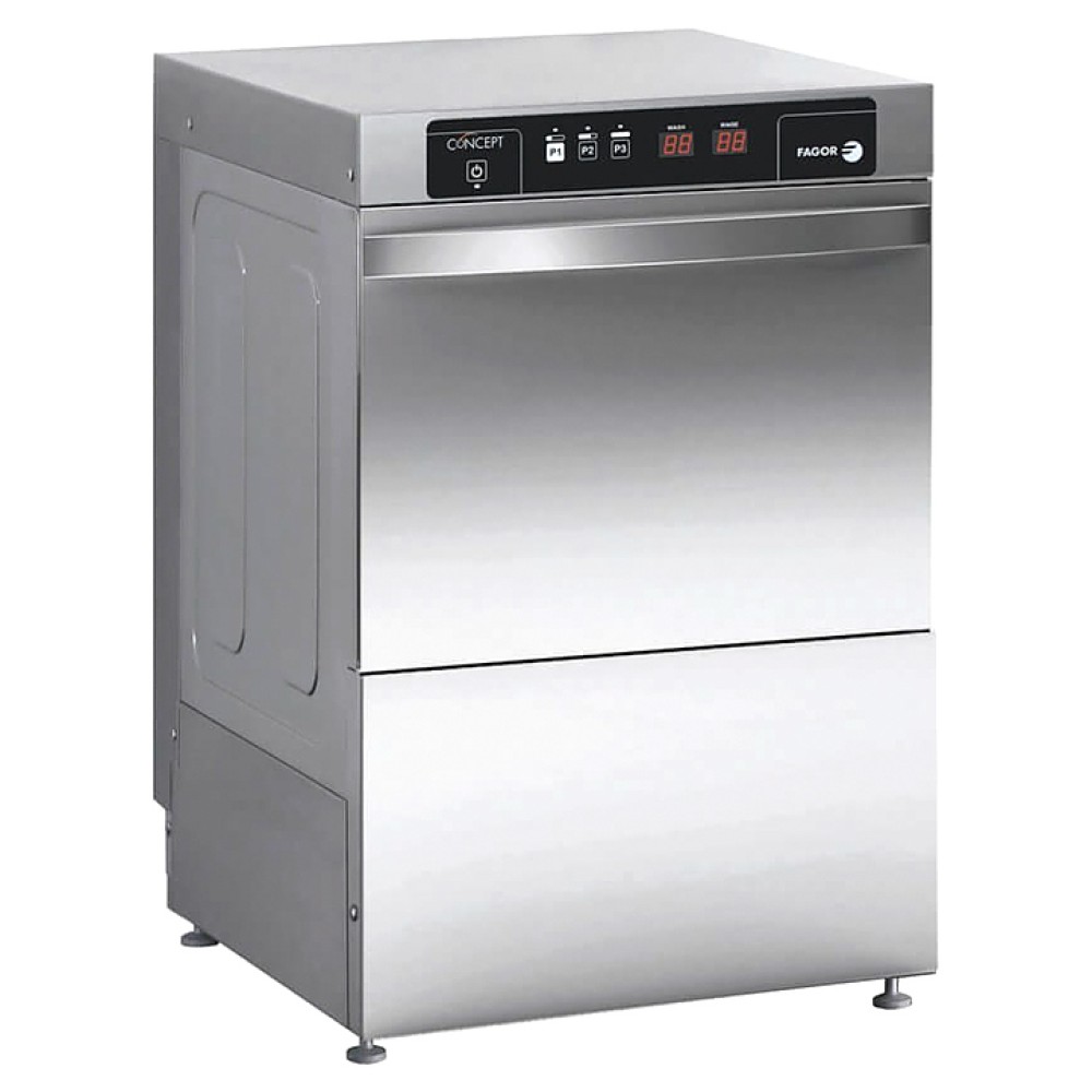 Посудомоечная машина с фронтальной загрузкой Fagor CO-402 COLD B DD серии E-VO CONCEPT используется на предприятиях общественного питания для мойки посуды, кухонных принадлежностей, стаканов, чашек и приборов. Модель оснащена электронной панелью управления и регулируемыми по высоте ножками. Цельный корпус выполнен из нержавеющей стали, разбрызгиватели - из нержавеющей стали AISI 304.