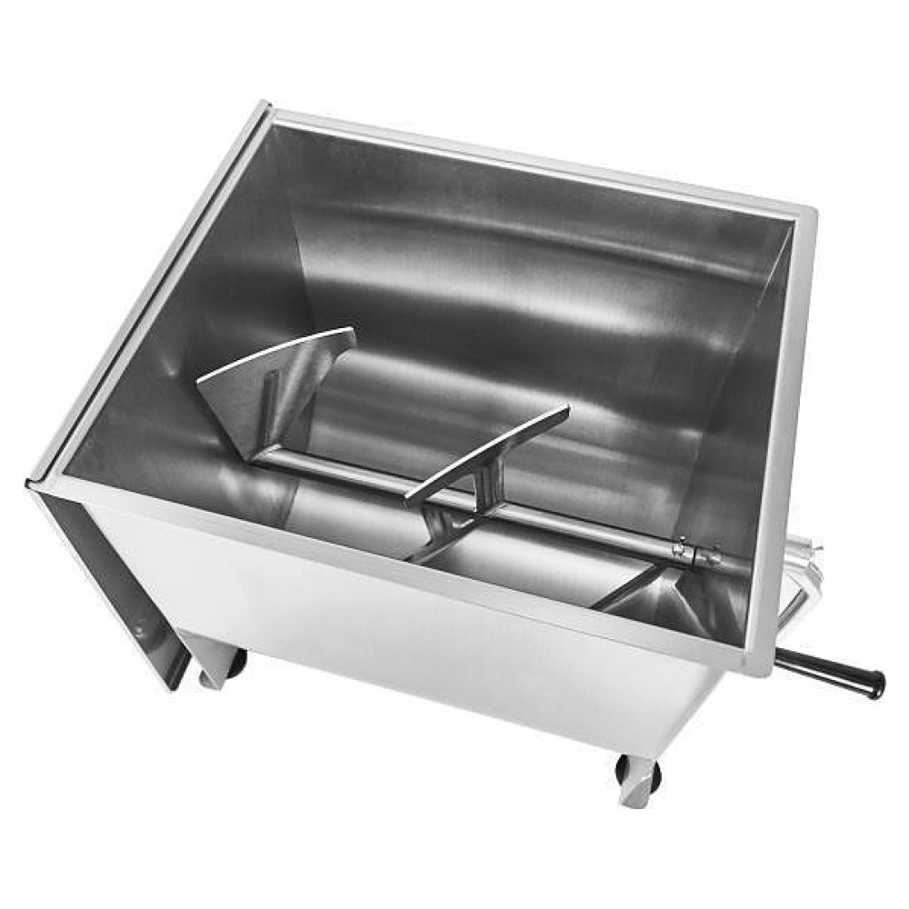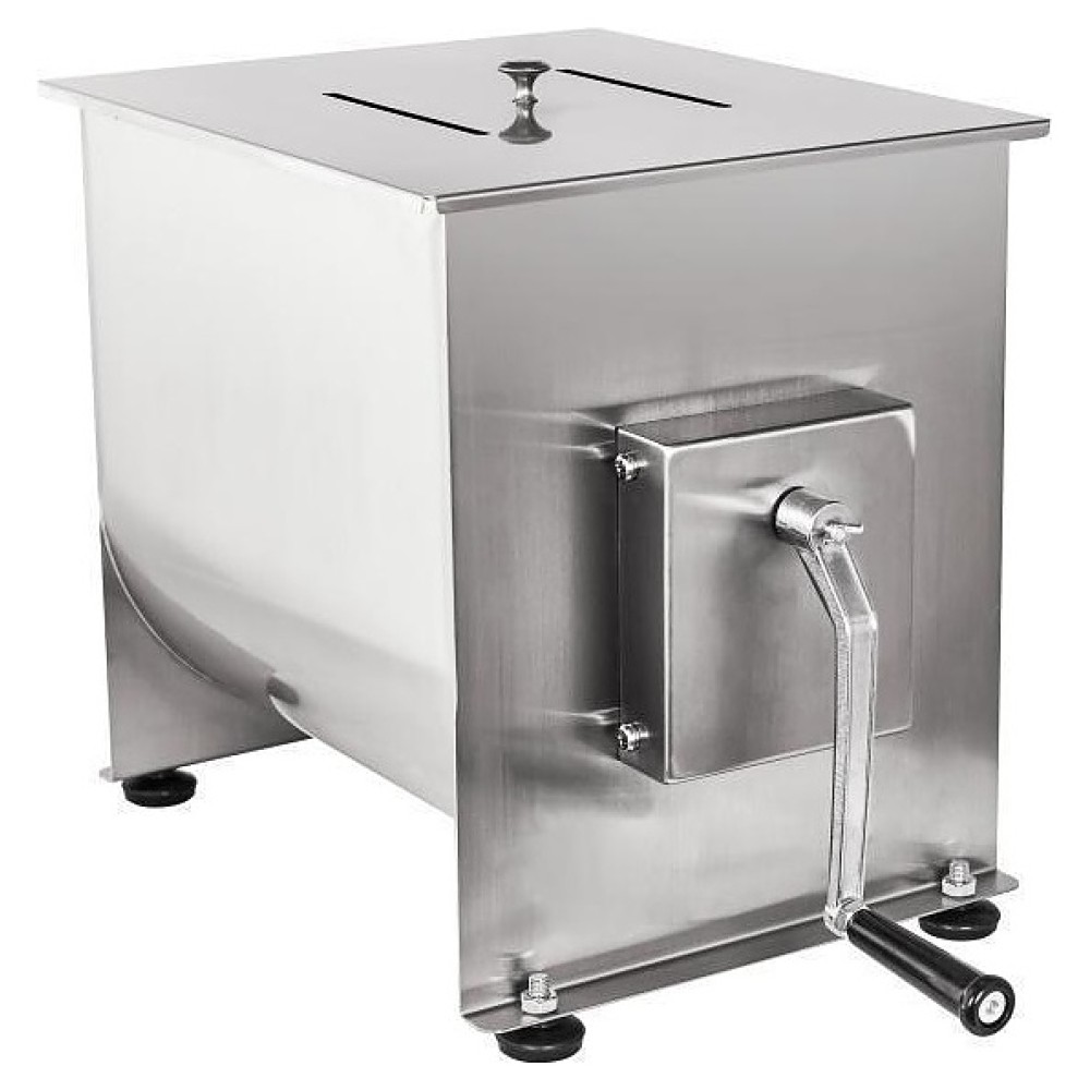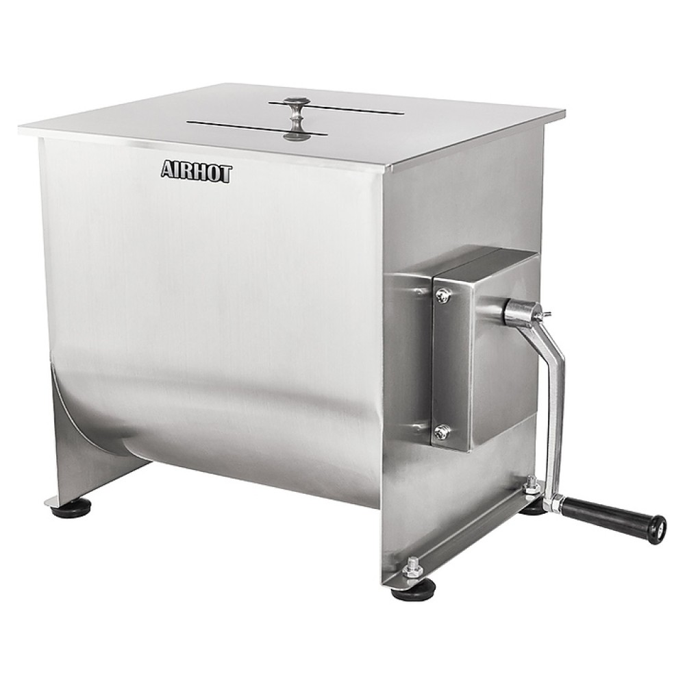 Фаршемешалка Airhot MM-20 используется на предприятиях общественного питания и торговли для равномерного перемешивания ингридиентов в процессе приготовления мясного и рыбного фарша, паштетов, салатов и различных начинок. Модель оснащена фиксированной дежой, горизонтальным месильным органом с Т-образными лопастями и боковыми скребками, ручным приводом и съемной крышкой. Корпус изготовлен из высококачественной нержавеющей стали.