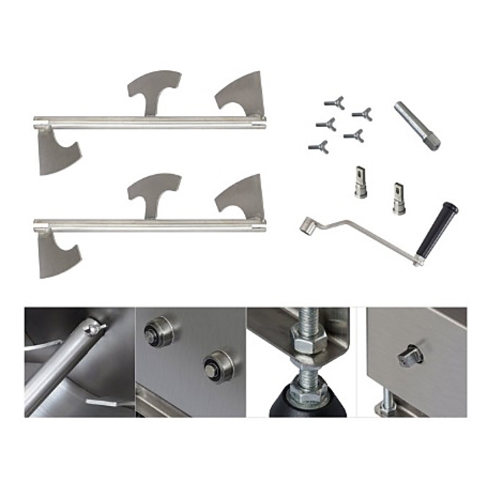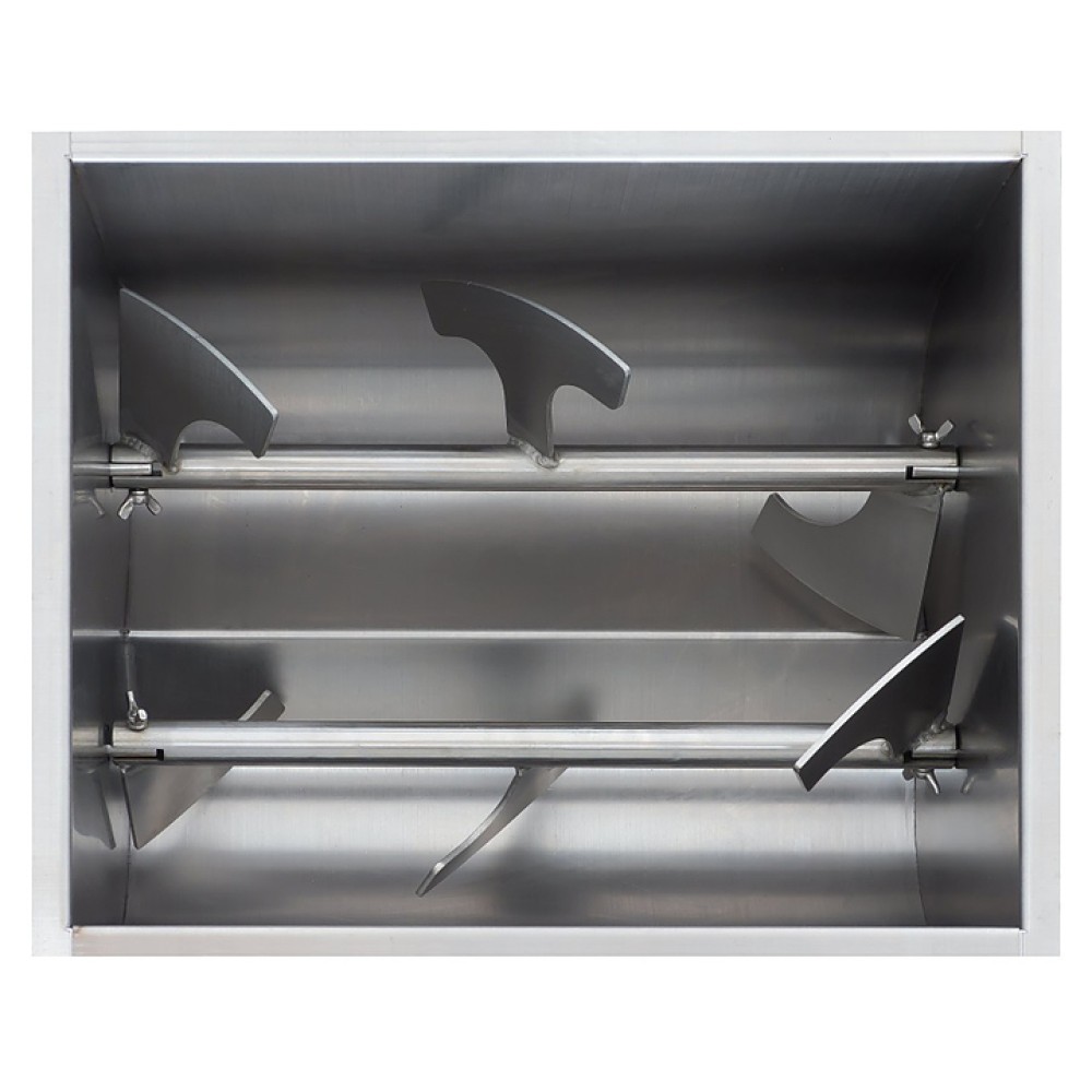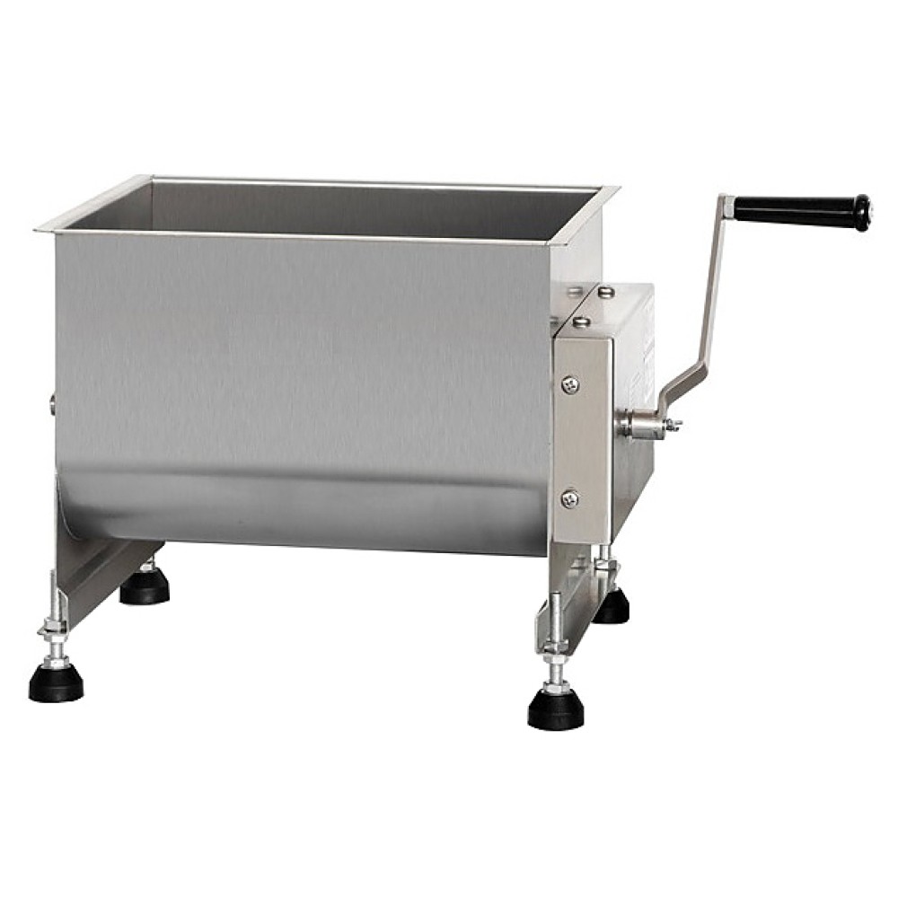 Фаршемешалка Kocateq FDH20 используется на предприятиях общественного питания и торговли для перемешивания измельченного мяса или рыбы в однородную смесь. Модель оснащена ручным приводом и фиксированным бункером. Корпус выполнен из нержавеющей стали, съемные оси с лопастями - из нержавеющей стали толщиной 3 мм, емкость для смешивания - из нержавеющей стали толщиной 2 мм.