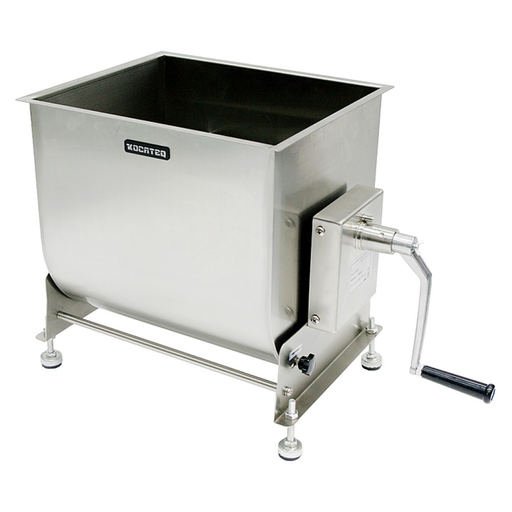 Фаршемешалка Kocateq FME30T используется на предприятиях общественного питания и торговли для перемешивания измельченного мяса или рыбы в однородную смесь. Модель оснащена ручным приводом, хабом для подключения электрического привода и откидным бункером. Корпус выполнен из нержавеющей стали, съемная ось с лопастями - из нержавеющей стали толщиной 3 мм, емкость для смешивания - из нержавеющей стали толщиной 2 мм.