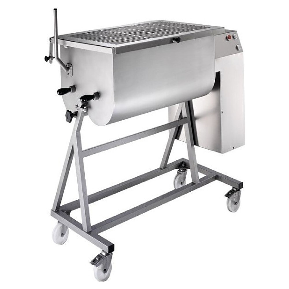 Фаршемешалка Minerva C/E MB180 380 В используется на предприятиях общественного питания и торговли для перемешивания различных видов фарша до однородной консистенции, а также для смешивания творога и овощной смеси. Модель оснащена двигателем непрерывного использования с вентиляцией, 4 колесами, 2 из которых с тормозом. Корпус, бункер, лопасти и крышка выполнены из нержавеющей стали.