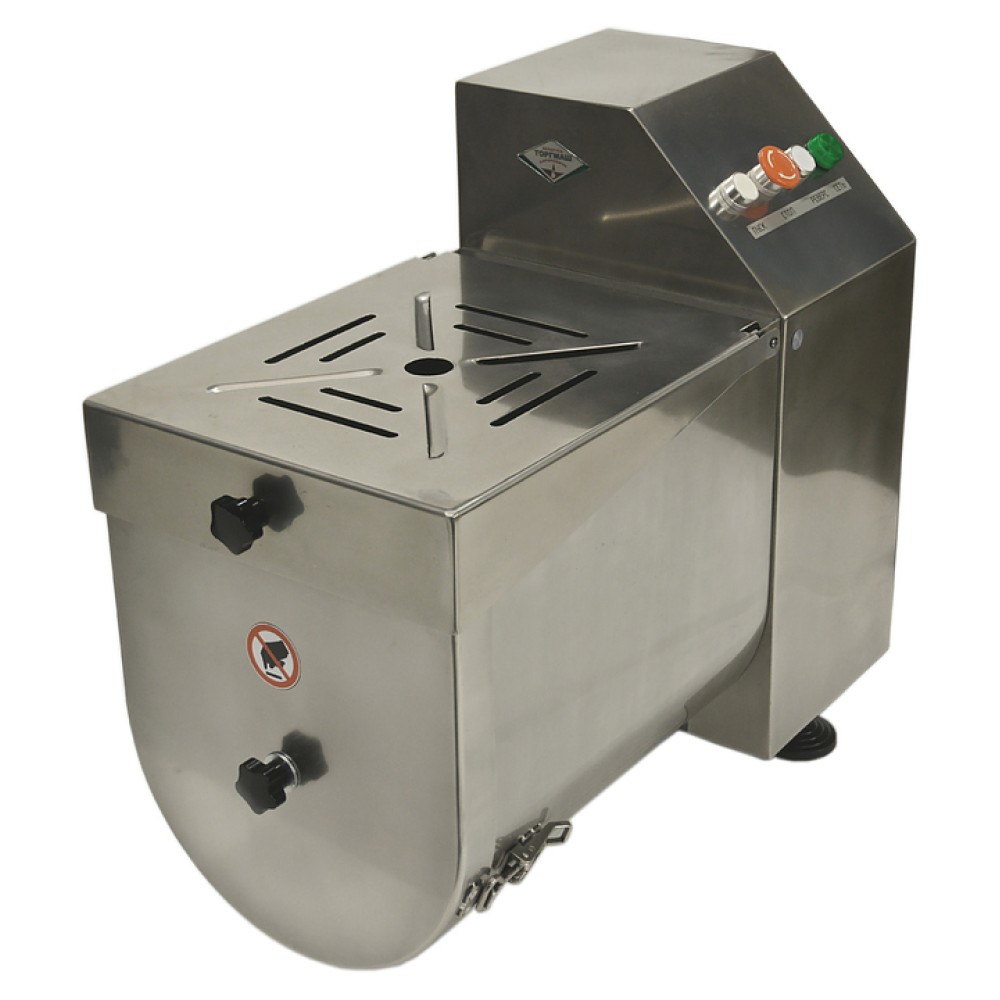 Фаршемешалка БЕЛТОРГМАШ МПФ-30.В1 используется на предприятиях общественного питания и торговли для равномерного перемешивания измельченных продуктов для приготовления различных начинок, салатов, фарша и перемешивания сухих фруктов, орехов и трав. Модель оснащена функцией реверс и крышкой с отверстиями-дозаторами и концевым выключателем. Корпус и ворошитель выполнены из высококачественной нержавеющей стали.