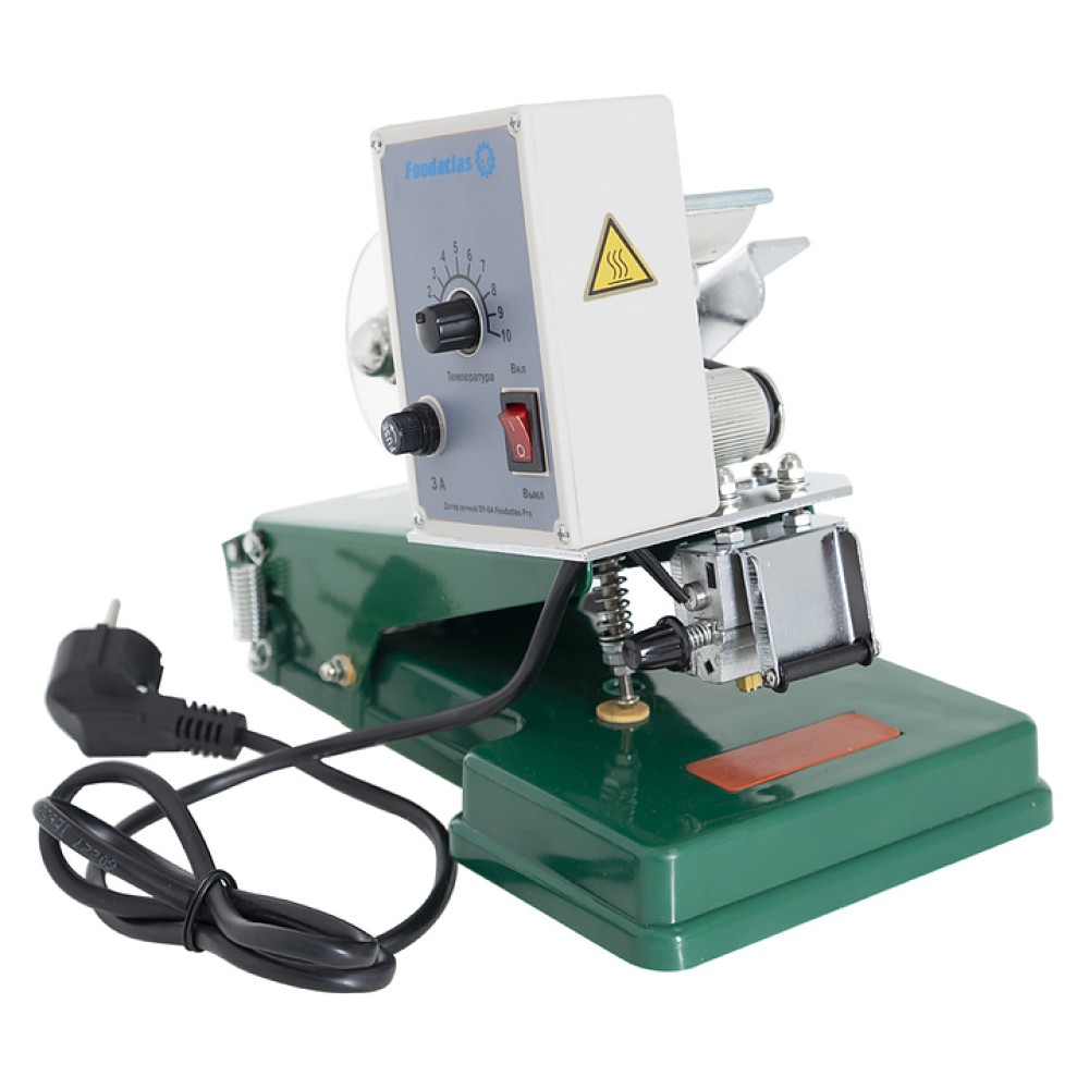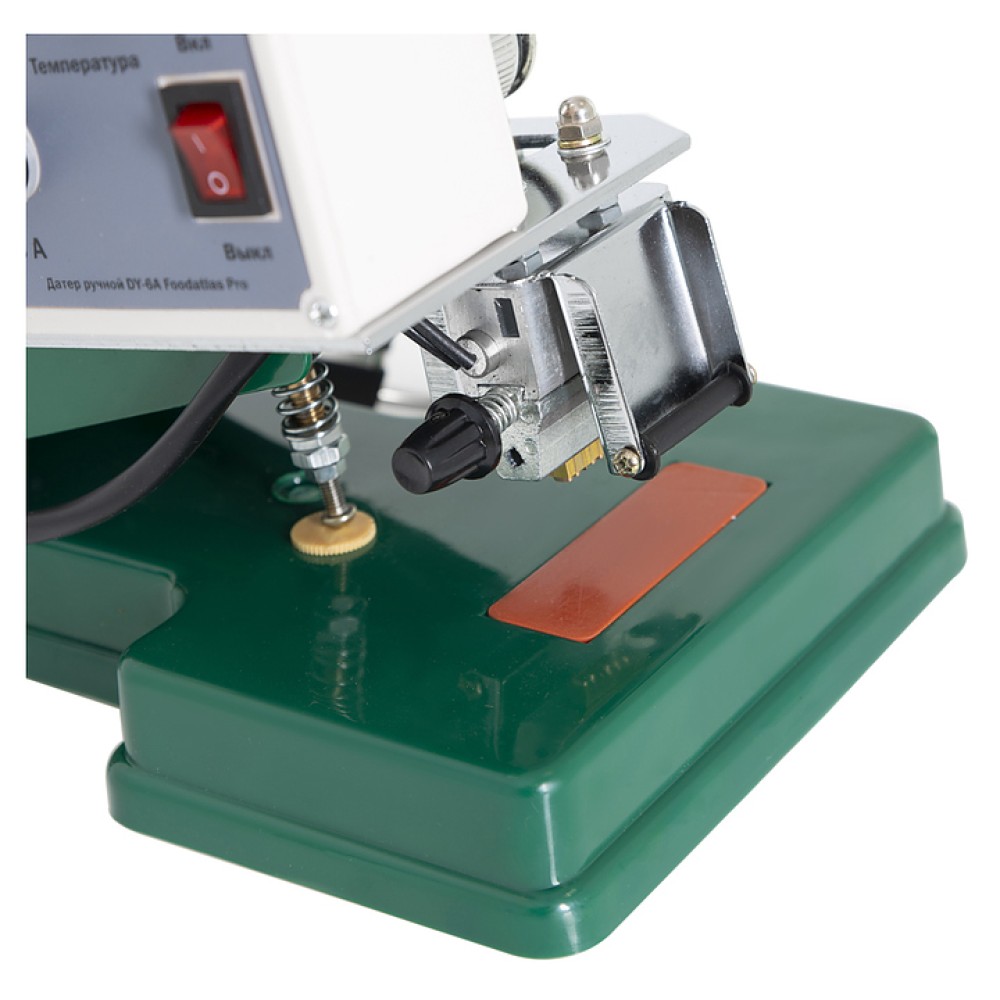 Ручной датер Foodatlas DY-6A Pro используется на предприятиях общественного питания и торговли для нанесения чернильной печати на полиэтилен, алюминиевую бумагу, выделанную кожу и другие упаковочные материалы. Модель оснащена регулировкой температуры. Аппарат позволяет проставить дату производства, срок хранения, номер партии, вес, цену и прочие показатели.
