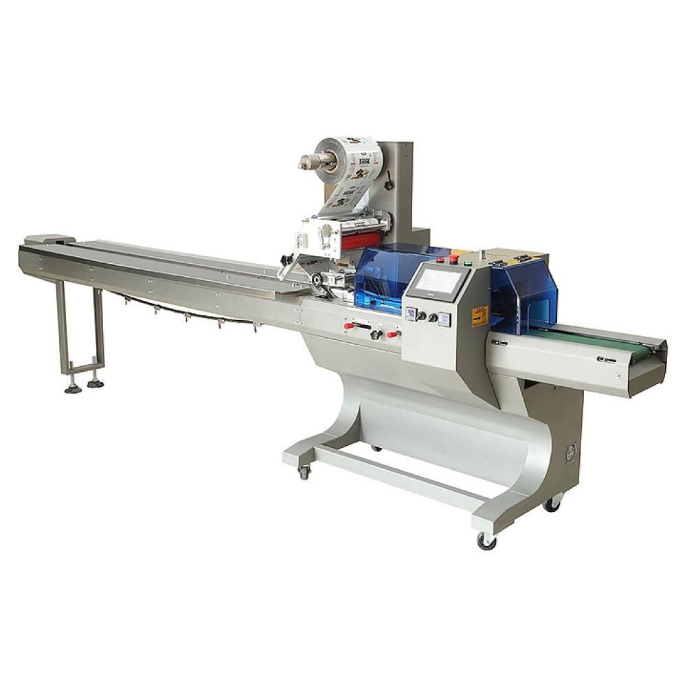 Горизонтальный упаковочный автомат МАГИКОН 450AGDTS DAN используется в цехах и на складах предприятий пищевой, косметической, фармацевтической и других направлений промышленности для герметичной упаковки печенья, шоколадных батончиков, мыла, одноразовой посуды, промышленных деталей и других штучных изделий и групп продуктов формы в пакеты типа «подушка» (flow pack). Модель оснащена рулонодержателем для пленки и электромеханической панелью управления. Корпус выполнен из окрашенного металла.