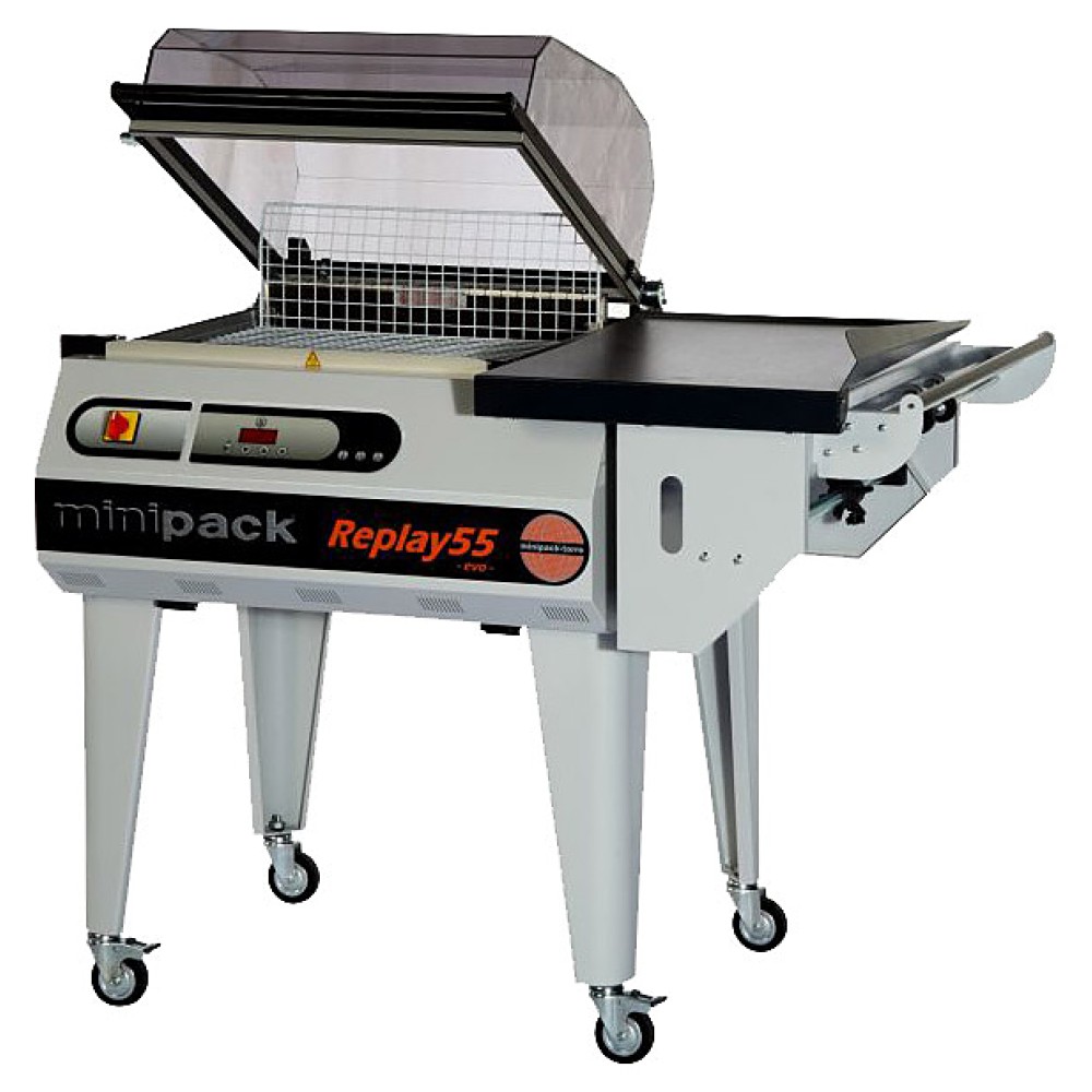Термоусадочная машина Minipack-Torre Replay 55 EVO используется на промышленных и торговых предприятиях для упаковки компакт-дисков, канцелярских и прочих товаров для офиса, продуктов питания полиолефиновой (ПОФ) или поливинилхлоридной (ПВХ) пленкой. Модель оснащена удобной панелью управления и прозрачной крышкой камеры для контроля процесса упаковки.