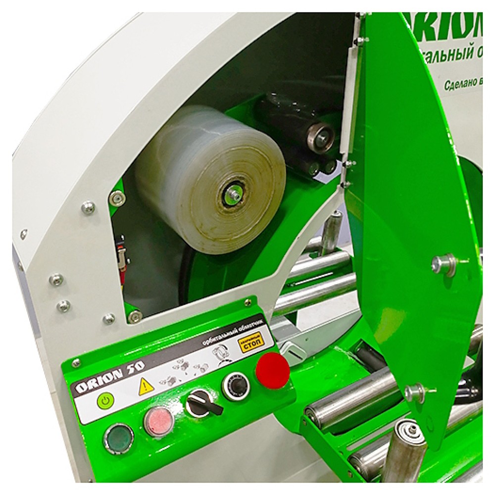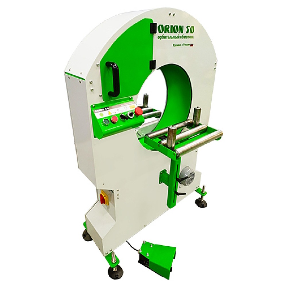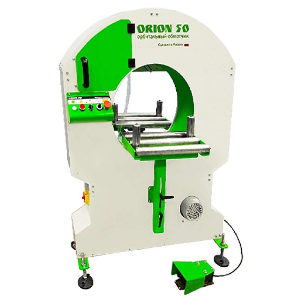 Упаковочная машина ПромСнаб Orion 50 предназначена для упаковки, группировки и защиты длинномерных изделий, таких как молдинги, профили, алюминиевые трубы и жалюзи в стрейч-пленку на предприятиях различных направлений. Модель оснащена ножной педалью для активации цикла упаковки.