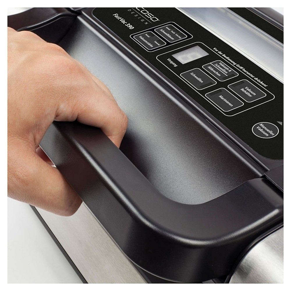 Вакуумный упаковщик CASO FastVAC 390 используется на предприятиях пищевой промышленности, общественного питания и торговли, а также в частных домах и квартирах для упаковки в вакуум полуфабрикатов и готовых блюд в пакетах или контейнерах для увеличения срока хранения. Модель оснащена цифровым дисплеем, двухпоршневым насосом и встроенным резаком для пленки. Корпус выполнен из нержавеющей стали и пластика.