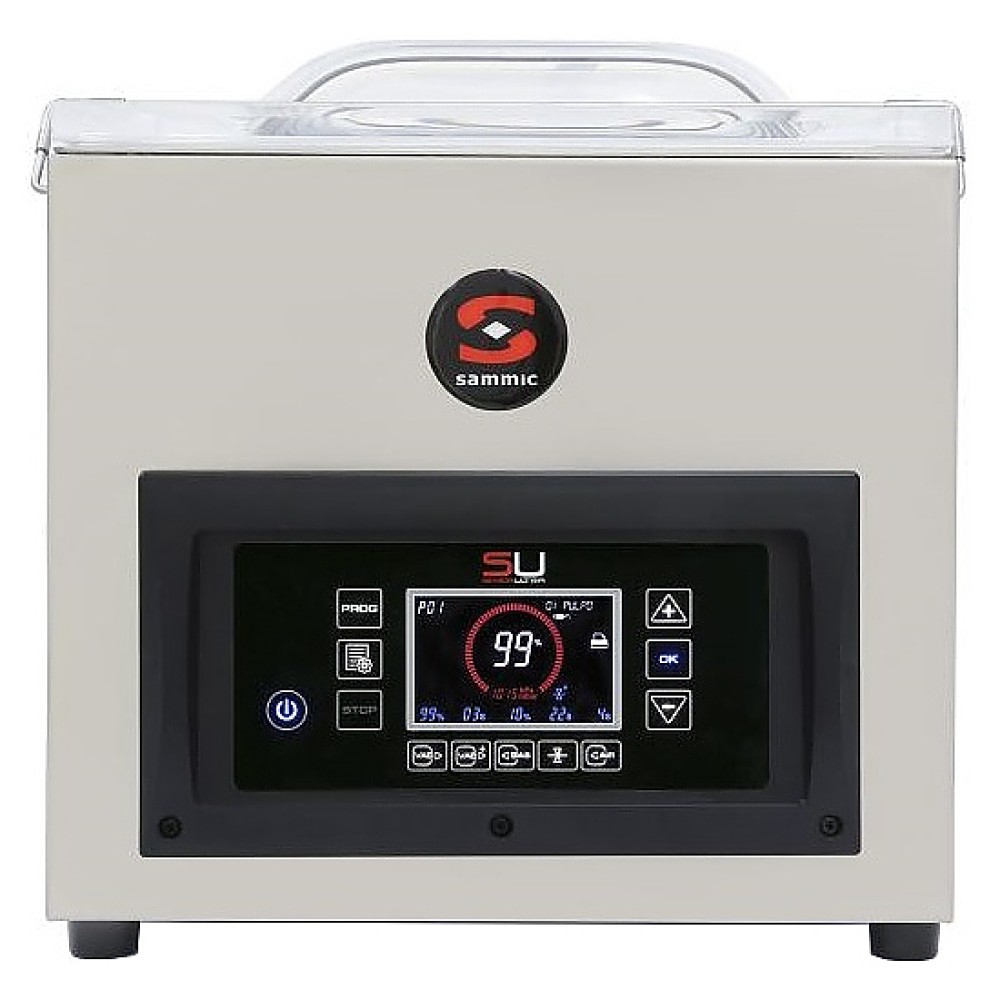 Вакуумный упаковщик Sammic SU-310G используется на предприятиях пищевой промышленности, общественного питания и торговли для упаковки продуктов питания и жидкостей в вакуум с целью увеличения срока их хранения, а также последующего приготовления способом Sous Vide. Модель оснащена насосом Busch, жидкокристаллическим дисплеем с выводом всей информации и сенсорной клавиатурой с подсветкой, заправочной плитой и прозрачной крышкой. Крышка выполнена из метакрилата.