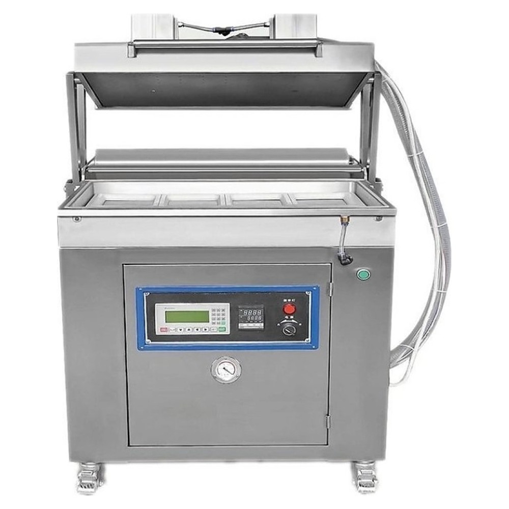 Полуавтоматический вакуумный скин-упаковщик Hualian DZ-750 используется на предприятиях пищевой промышленности, общественного питания и торговли для герметичной упаковки готовых блюд, полуфабрикатов, фруктов и других пищевых продуктов в лотках или на поддонах под плотно облегающую поверхность скин-пленку для сохранения свежести, предотвращения размножения микроорганизмов и смешивания запахов. Модель оснащена вакуумной камерой с верхней откидной крышкой, держателем для рулона с пленкой позади камеры и расположенной на фронтальной крышке технического отсека панелью управления с функциональными клавишами, жидкокристаллическим и 2 светодиодными цифровыми дисплеями. Камера и корпус выполнены из высококачественной нержавеющей стали.