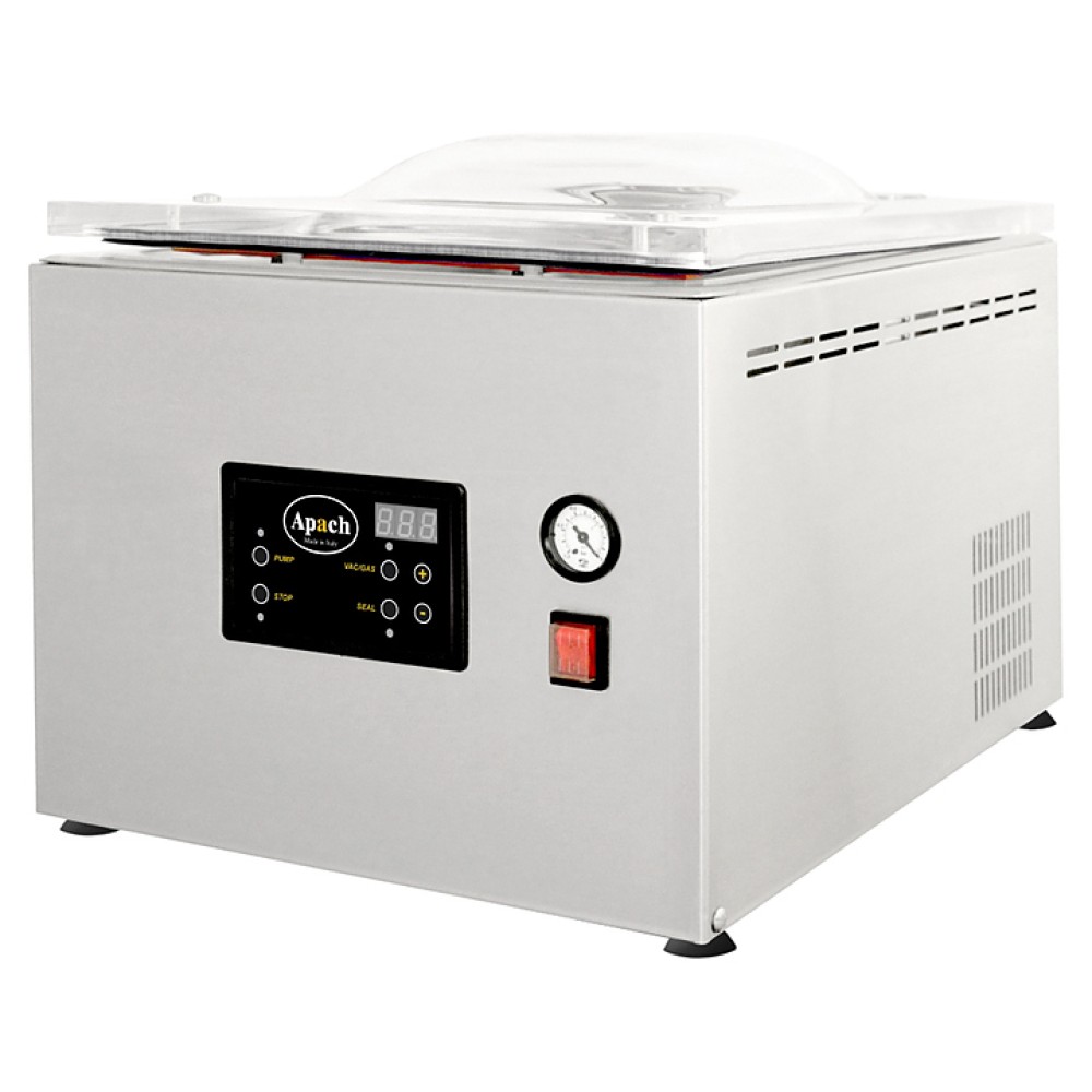 Вакуумный упаковщик Apach AVM312 используется на предприятиях общественного питания и торговли для упаковки различных продуктов в специальных пакетах для увеличения срока их хранения. Модель оснащена модулем газонаполнения, влагозащищенной электронной панелью управления с дисплеем, полностью автоматическим циклом упаковки и бесшовной камерой с закругленными углами, что облегчает процесс чистки. Корпус и камера выполнены из нержавеющей стали.