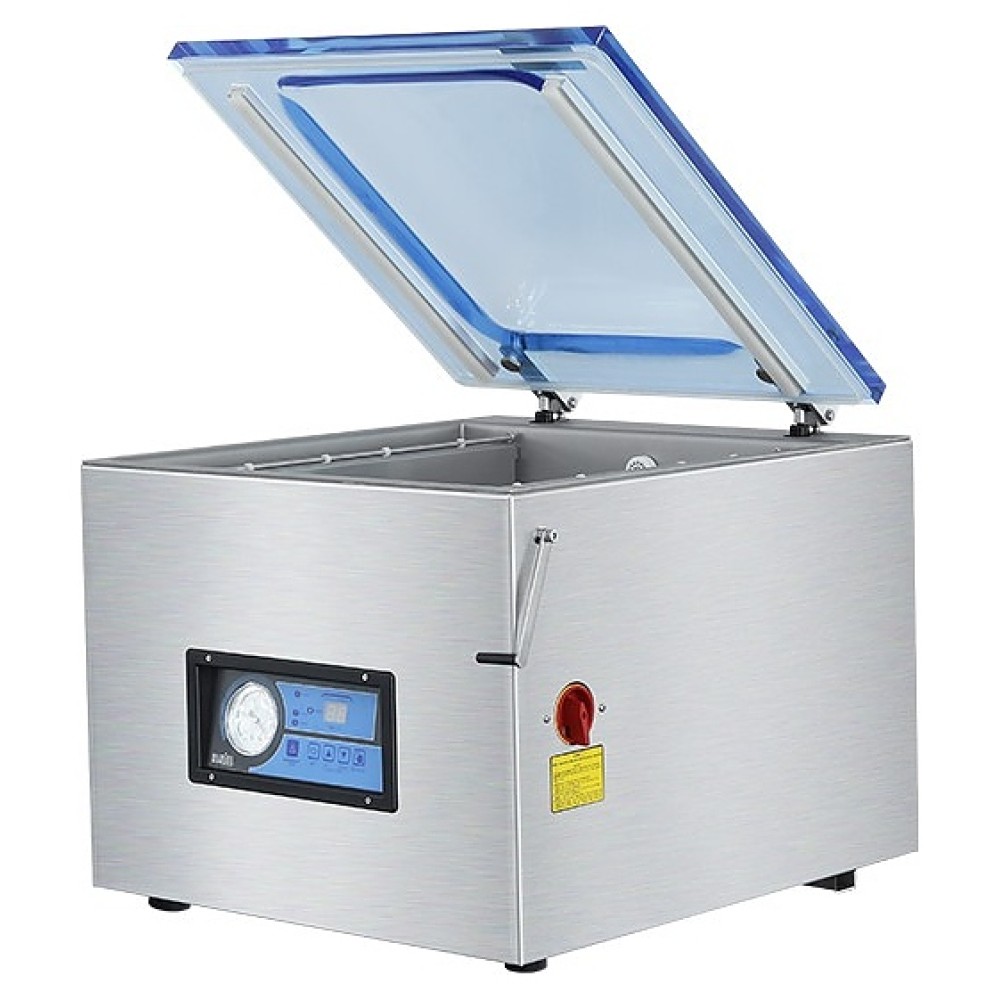 Вакуумный упаковщик Hualian HVC-410T/2A-G используется на производственных площадках, предприятиях пищевой промышленности, общественного питания и торговли для упаковки товаров. Модель оснащена функцией газонаполнения и промышленным насосом. Камера и корпус выполнены из высококачественной нержавеющей стали AISI 304, крышка синего цвета - из прозрачного оргстекла.