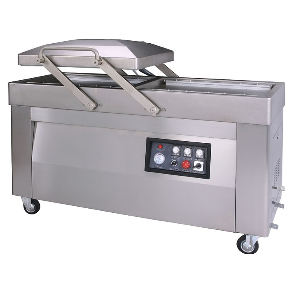 Напольный вакуумный упаковщик Hualian HVC-720S/2A-G используется на предприятиях пищевой промышленности, общественного питания и торговли для упаковки готовых блюд и различных пищевых продуктов в герметичную тару для сохранения свежести, предотвращения размножения микроорганизмов и смешивания запахов. Модель оснащена 2 объемными камерами, 2 сварочными пластинами в каждой камере, расположенной сверху крышкой и электромеханической панелью управления. Корпус и крышка выполнены из высококачественной нержавеющей стали марки SUS304.