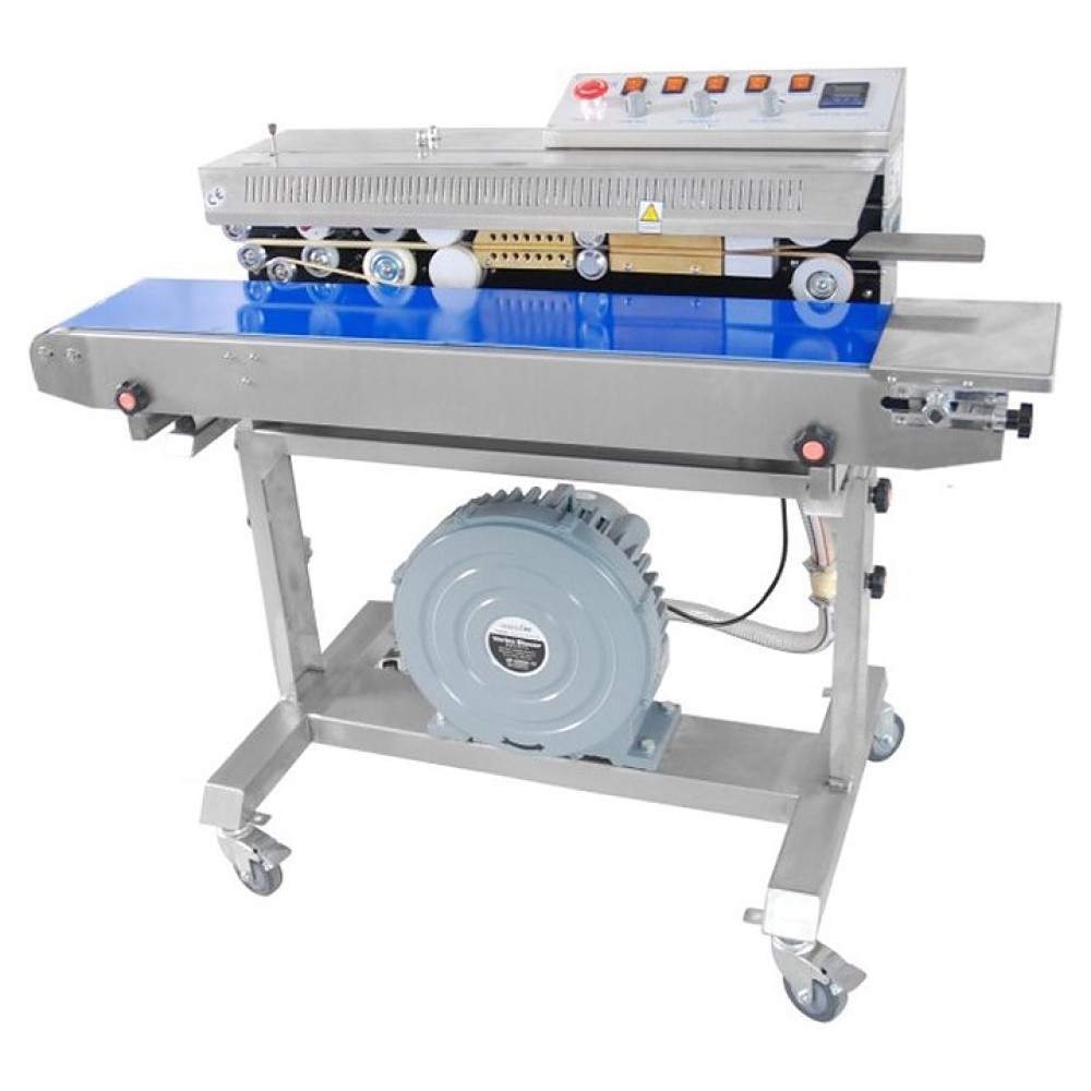 Конвейерный роликовый запайщик Hualian FRMQ-1010III SS используется на производственных площадках, предприятиях пищевой промышленности, общественного питания и торговли для запайки пакетов из термосвариваемых материалов в горизонтальном положении. Модель оснащена механической панелью управления и подставкой с подвижными колесиками для напольной установки. Корпус выполнен из нержавеющей стали.