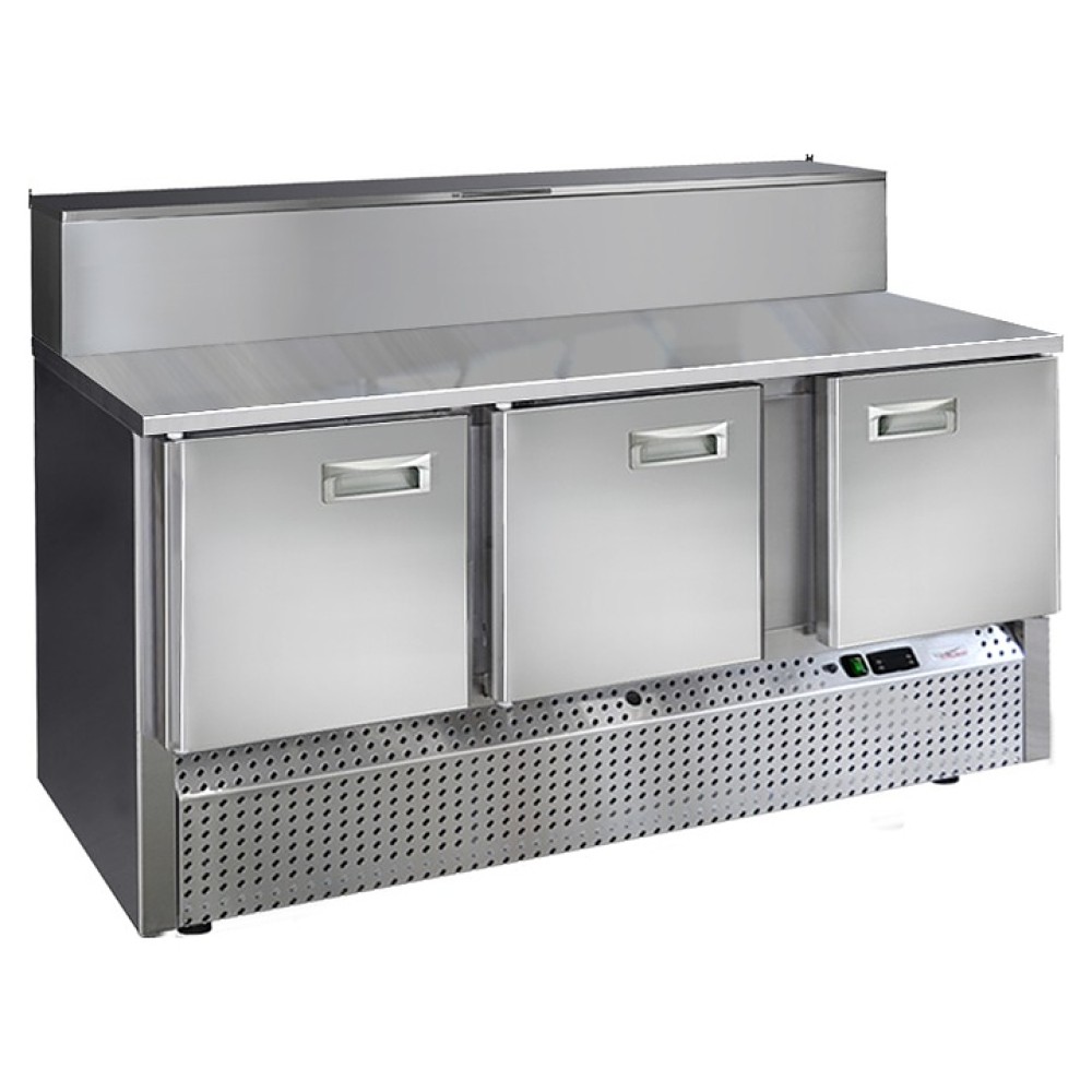 Холодильный стол Finist СХСнпц-700-3 предназначен для хранения скоро портящихся полуфабрикатов из мяса, рыбы и других ингридиентов для приготовления пиццы на предприятиях общественного питания и торговли. Модель оснащена расположенным снизу агрегатным отсеком, столешницей с отсеком для гастроемкостей с крышкой, 3 холодильными камерами с распашными дверцами, устойчивыми ножками с подпятниками, кабелем питания с евровилкой и кнопочной панелью управления с цифровым дисплеем. Корпус выполнен из высококачественной нержавеющей стали.