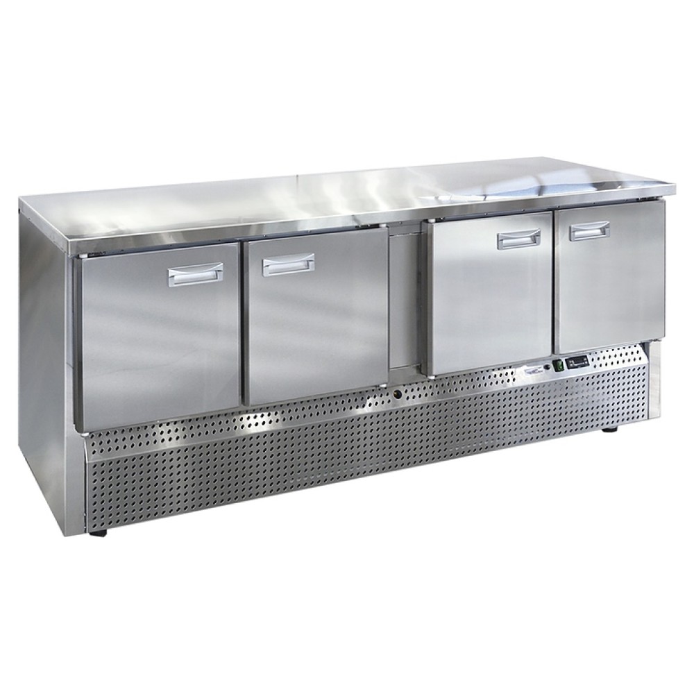 Холодильный стол Finist СХСн-600-4 предназначен для хранения предварительно охлажденных мясных и рыбных полуфабрикатов, заготовок для салатов, молочной продукции, охлажденных напитков и других пищевых продуктов на предприятиях общественного питания и торговли. Модель оснащена расположенным снизу агрегатным отсеком, столешницей, 4 холодильными камерами с распашными дверцами, устойчивыми ножками с подпятниками, кабелем питания с евровилкой и кнопочной панелью управления с цифровым дисплеем. Корпус выполнен из высококачественной нержавеющей стали.