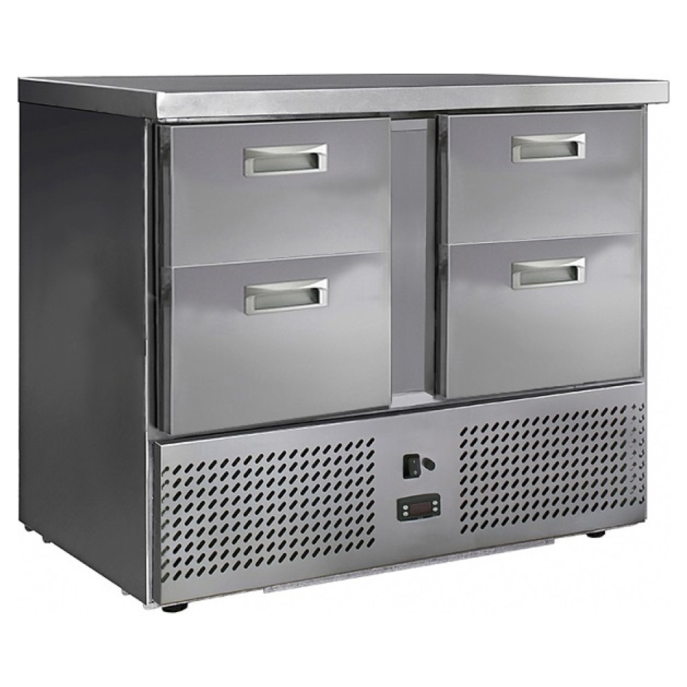 Среднетемпературный холодильный стол Finist СХСн-700-0/4 предназначен для обработки и хранения пищевых продуктов на предприятиях общественного питания и торговли. Модель оснащена расположенным снизу агрегатным отсеком, 4 выдвижными ящиками, кабелем питания с вилкой и кнопочной панелью управления с цифровым дисплеем. Корпус выполнен из высококачественной нержавеющей стали, задняя стенка – из оцинкованной стали.