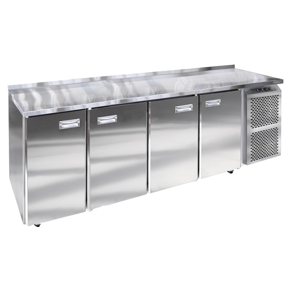 Холодильный стол Finist СХСуо-600-4 предназначен для хранения предварительно охлажденных мясных и рыбных полуфабрикатов, заготовок для салатов, молочной продукции, охлажденных напитков и других пищевых продуктов на предприятиях общественного питания и торговли. Модель оснащена расположенным сбоку агрегатным отсеком, 4 секциями с распашными дверьми, устойчивыми опорами, кабелем питания и панелью управления с цифровым дисплеем. Корпус выполнен из высококачественной нержавеющей стали.