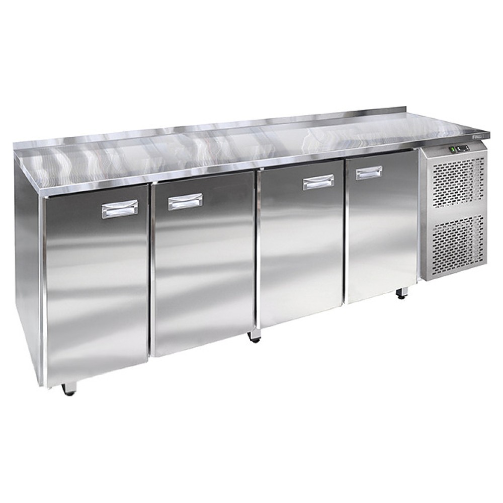 Холодильный стол Finist УХС-600-4 предназначен для хранения предварительно охлажденных мясных и рыбных полуфабрикатов, заготовок для салатов, молочной продукции, охлажденных напитков и других пищевых продуктов на предприятиях общественного питания и торговли. Модель оснащена расположенным сбоку агрегатным отсеком, 4 секциями с распашными дверьми, устойчивыми опорами, кабелем питания и панелью управления с цифровым дисплеем. Корпус выполнен из высококачественной нержавеющей стали.