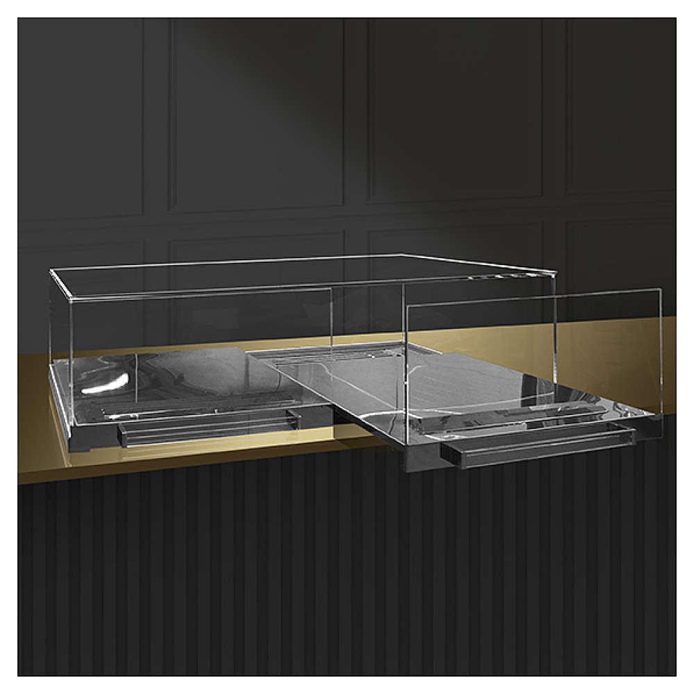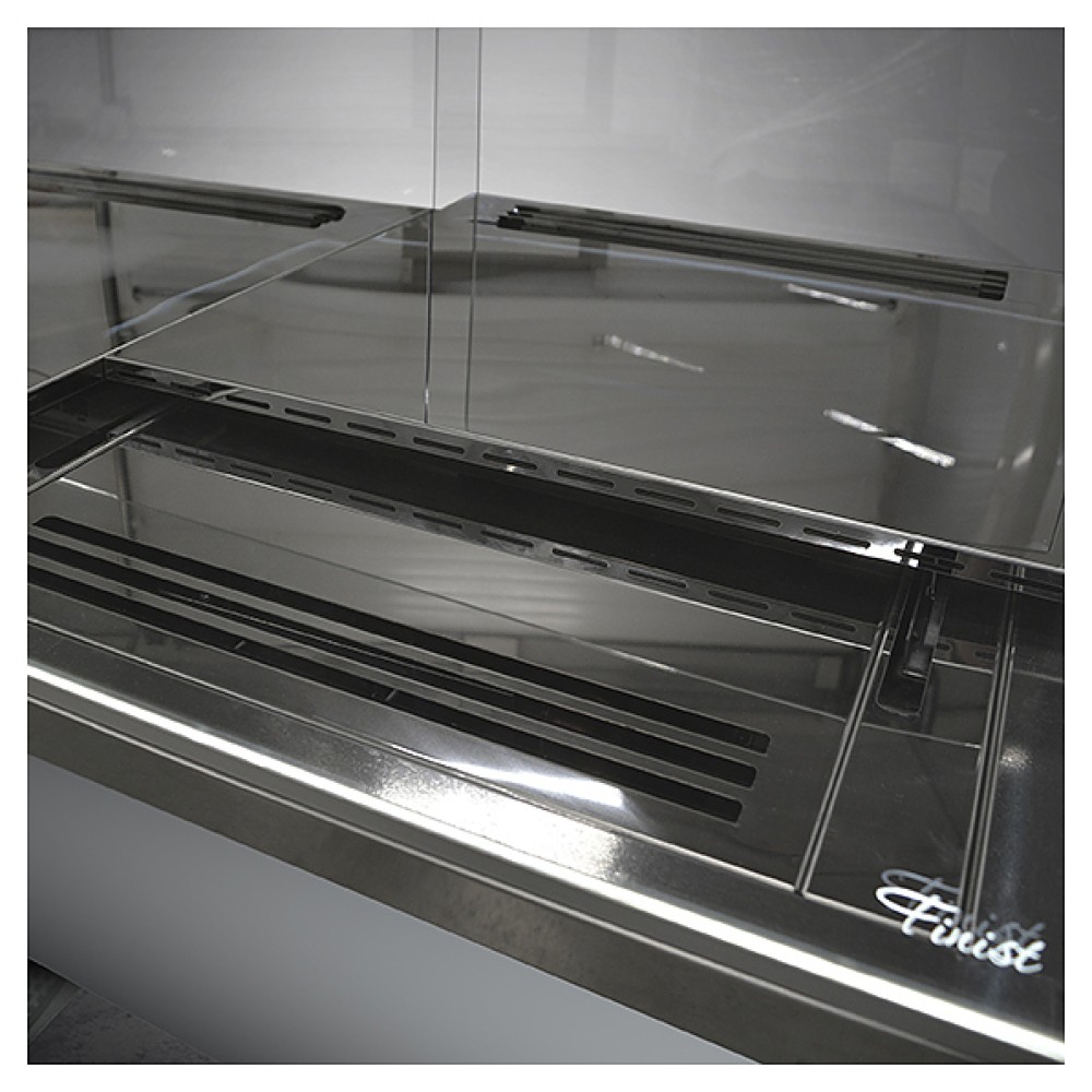 Встраиваемая горизонтальная кондитерская витрина Finist Glassier SLIDE DUO GSD-GSD-10/65/3 предназначена для кратковременного хранения, предпродажной демонстрации и эффектной подачи кондитерских изделий на предприятиях общественного питания и торговли. Модель оснащена 2 выдвижными поддонами и регулируемой светодиодной подсветкой. Корпус выполнен из высококачественной зеркальной нержавеющей стали, купол – из просветленного стекла, корпус агрегатной части - из крашеной стали.