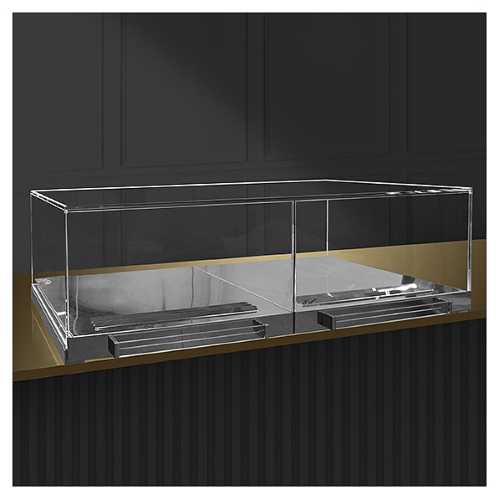 Встраиваемая горизонтальная кондитерская витрина Finist Glassier SLIDE DUO GSD-8/7/3 предназначена для кратковременного хранения, предпродажной демонстрации и эффектной подачи кондитерских изделий на предприятиях общественного питания и торговли. Модель оснащена 2 выдвижными поддонами и регулируемой свтеодиодной подсветкой. Корпус выполнен из высококачественной зеркальной нержавеющей стали, купол – из просветленного стекла, корпус агрегатной части - из крашеной стали.
