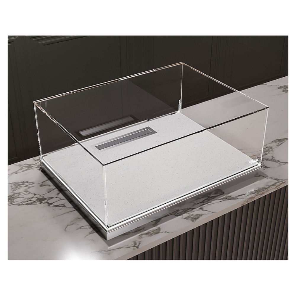 Встраиваемая кондитерская витрина Finist Glassier SLIDE Stone GSst-11/55/3 предназначена для кратковременного хранения и предпродажной демонстрации десертов и кондитерских изделий на предприятиях общественного питания и торговли. Модель может монтироваться в столешницу из любого материала, что позволяет легко интегрировать в интерьер. Витрина оснащена светодиодной подсветкой. Выдвижной поддон позволяет доставать выбранные гостями блюда легко и быстро. Каркас выполнен из зеркальной нержавеющей стали, купол - из просветленного стекла, зона выкладки - из искусственного камня, который отличается прочностью, долговечностью, гигиеничностью, легко очищается и не впитывает запахи.