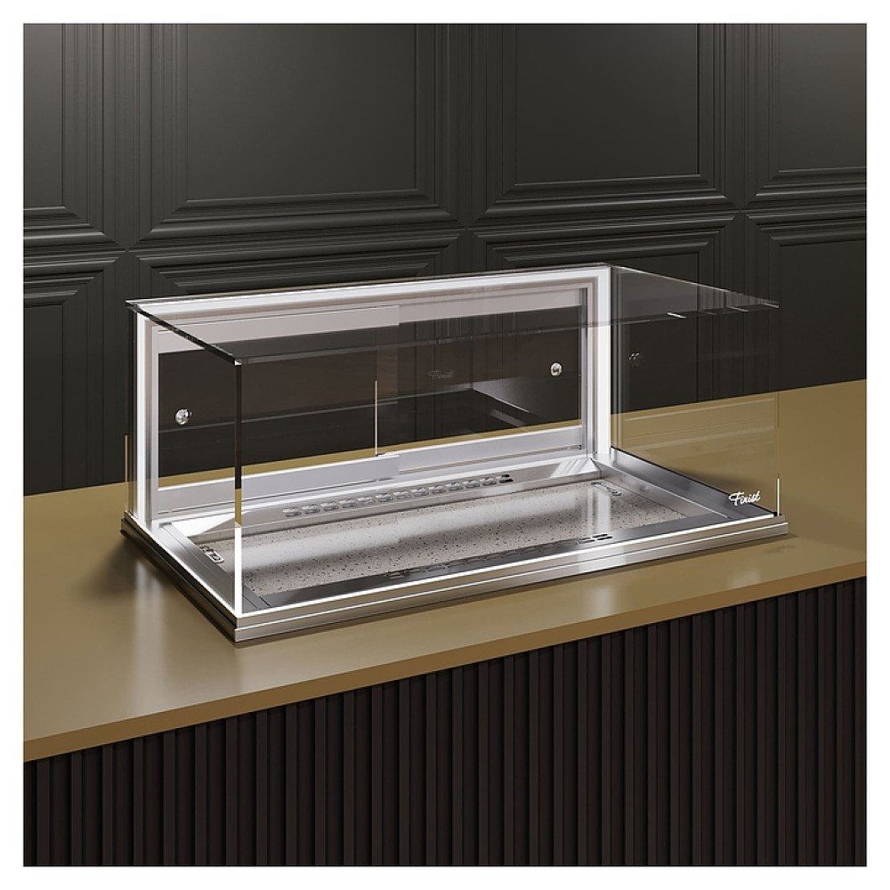 Встраиваемая горизонтальная кондитерская витрина Finist Glassier58 Stone Gst-10/65/3 предназначена для кратковременного хранения и предпродажной демонстрации кондитерских изделий на предприятиях общественного питания и торговли. Модель оснащена закрытой холодильной камерой, скрытыми под основанием камеры агрегатным отсеком, кабелем питания с вилкой и электромеханической панелью управления. Основание камеры выполнено из высококачественной нержавеющей стали с серебристой зеркальной поверхностью, столешница для выкладки – из искусственного камня, корпус агрегатного отсека – из стали с антикоррозийным покрытием белого цвета (RAL 9016).