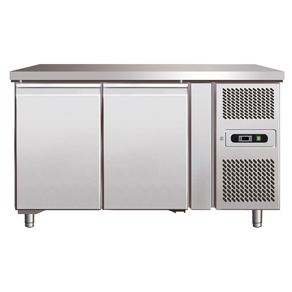 Охлаждаемый стол FORCAR GN2100TN предназначен для хранения пищевых продуктов (мясных и рыбных полуфабрикатов, заготовок для салатов, молочной продукции) и напитков. Стол выполнен из нержавеющей стали марки AISI-304, которая полностью соответствует санитарным нормам. Верх стола накрыт столешницей. Имеется две двери для доступа в пространство полезного объема. Внутри стола расположен воздухоохладитель с вентиляторами, которые обеспечивают равномерное и быстрое распределение холодного воздуха внутри полезного объема стола.