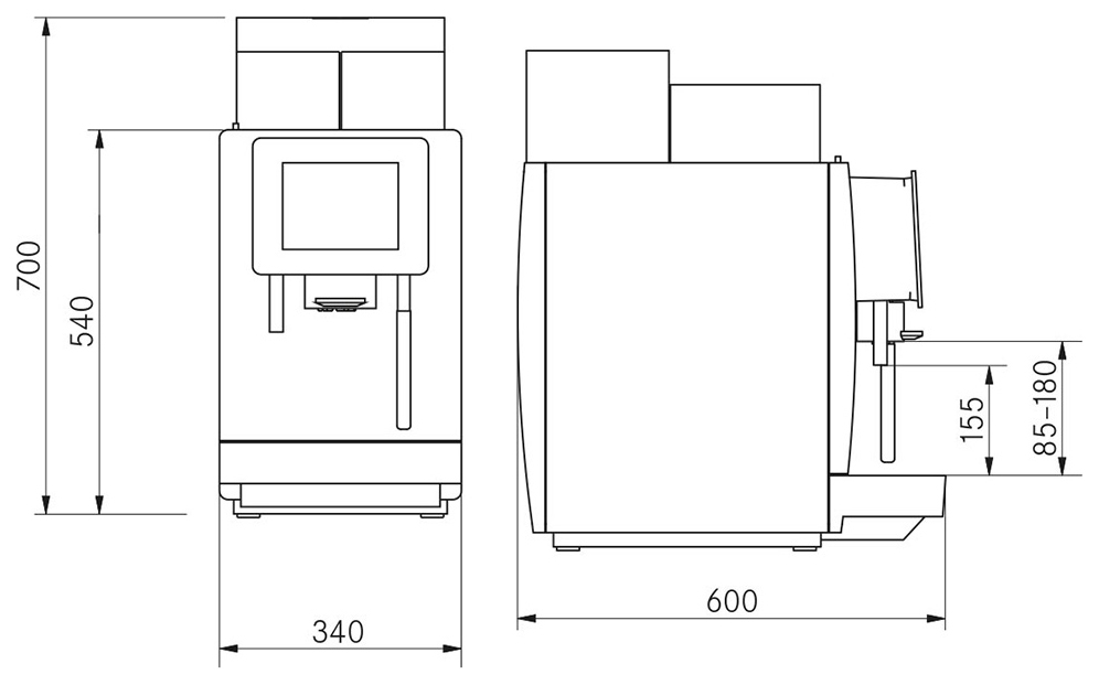| Давление1 / 8 бар | Емкость контейнера для кофе1200 г | Емкость контейнера для отработанного кофе80 порций |