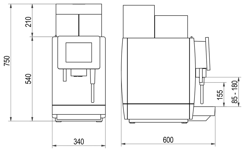| Давление2,1 / 8 бар | Емкость контейнера для кофе2000 г | Емкость контейнера для отработанного кофеот 60 до 110 порций |