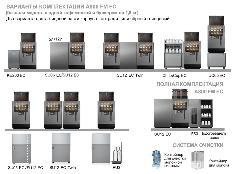 Кофемашина Franke A800 FM EC 1G H1 используется на предприятиях общественного питания и торговли, в офисах и отелях для приготовления чая, кофе и кофейных напитков. Модель оснащена интерактивным сенсорным экраном диагональю 10,4 дюйма с 3 различными интуитивно понятными режимами работы и возможностью демонстрации рекламных предложений.