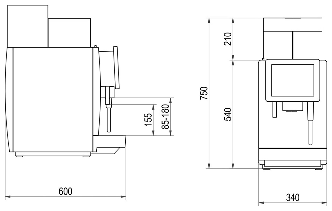 | Давление1 / 8 бар | Емкость контейнера для кофе1200 г | Емкость контейнера для отработанного кофеот 60 до 110 порций |