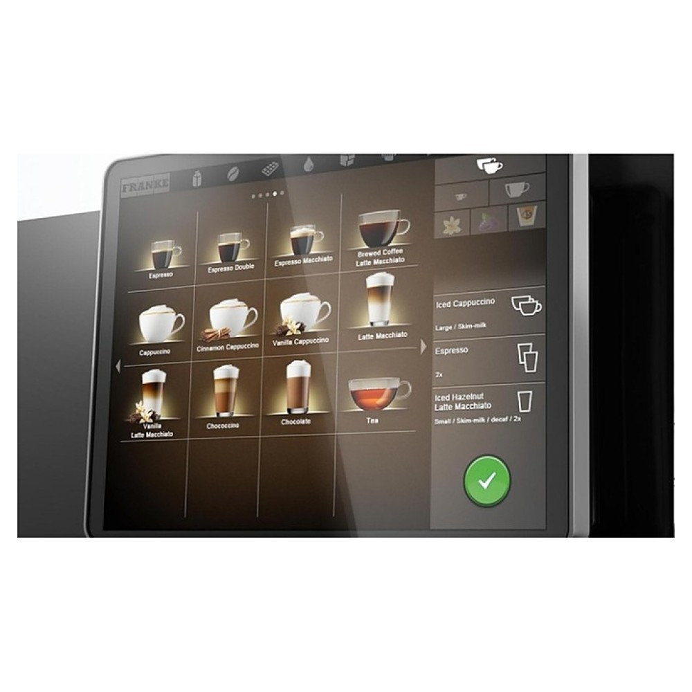 Кофемашина Franke A800 FM EC MU 1G H1 используется на предприятиях общественного питания и торговли, в офисах и отелях для приготовления чая, кофе и кофейных напитков. Модель оснащена интерактивным сенсорным экраном диагональю 10,4 дюйма с 3 различными интуитивно понятными режимами работы и возможностью демонстрации рекламных предложений.