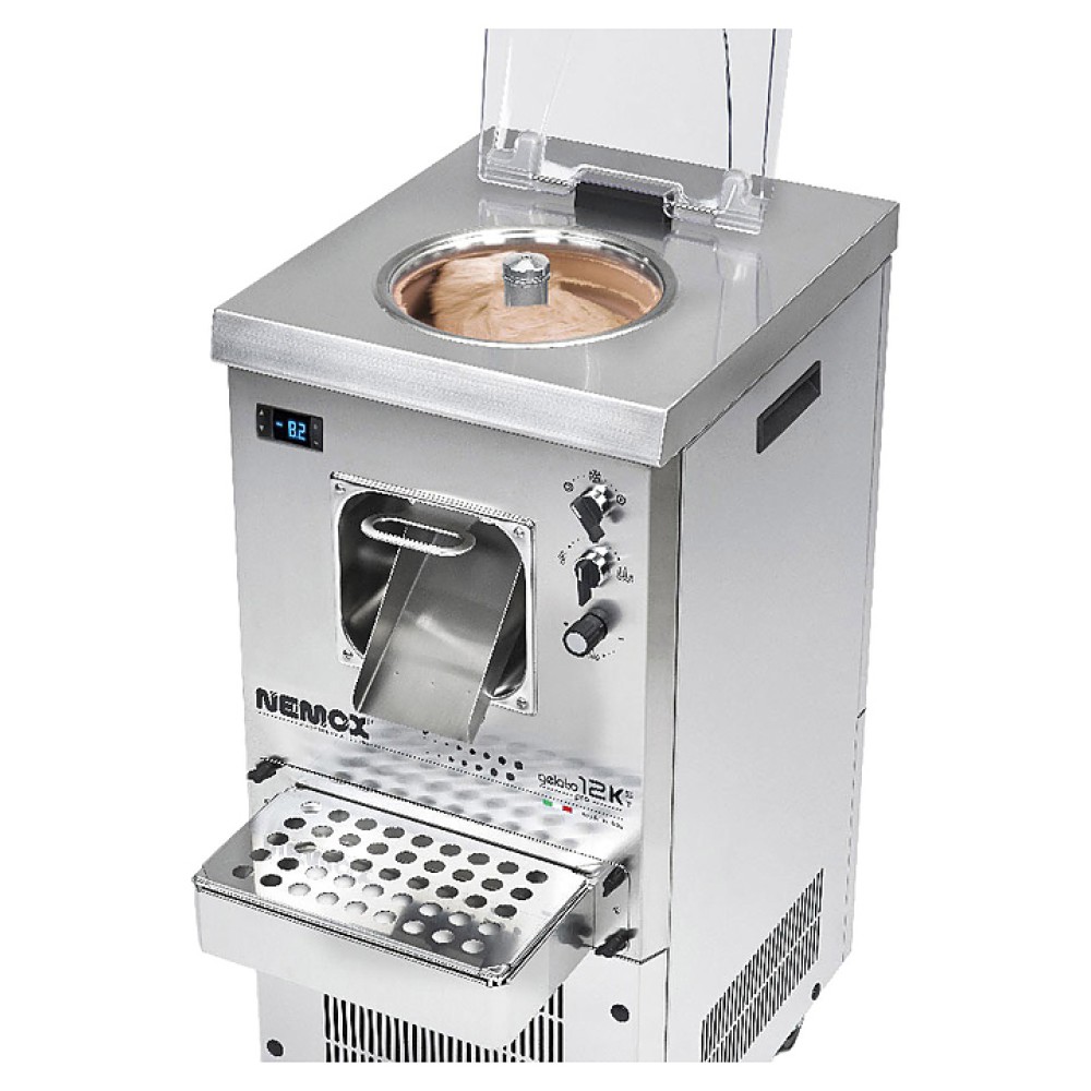 Фризер для мороженого Nemox Gelato 12K ST используется в барах, кафе, на открытых летних площадках, в специальных отделах супермаркетов и торговых центрах для приготовления мороженого кремообразной текстуры. Корпус и лопасти выполнены из нержавеющей стали AISI 304.
