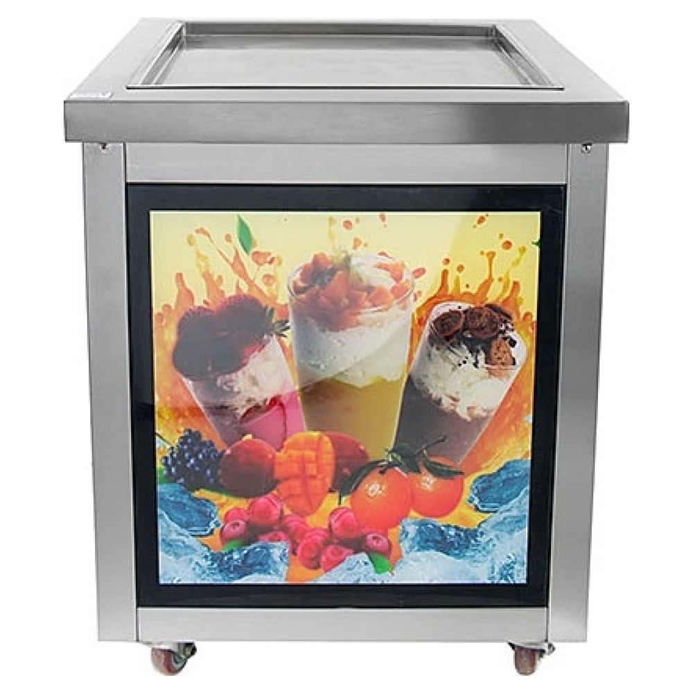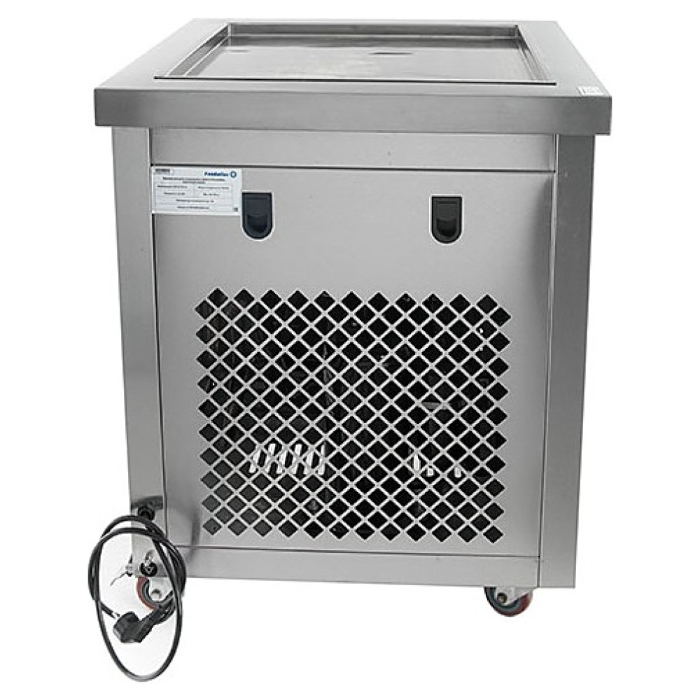 Напольный фризер для мороженого Foodatlas KCD-1F используется на предприятиях общественного питания и торговли для приготовления жареного мороженого в роллах. Модель оснащена компрессором, световым коробом, квадратной поверхностью для «жарки» десерта при минусовой температуре и последующего скручивания продукта в роллы, кнопочной панелью управления и кабелем питания с евровилкой. Корпус и рабочая поверхность выполнены из высококачественной нержавеющей стали, упаковка – из фанеры и картона.