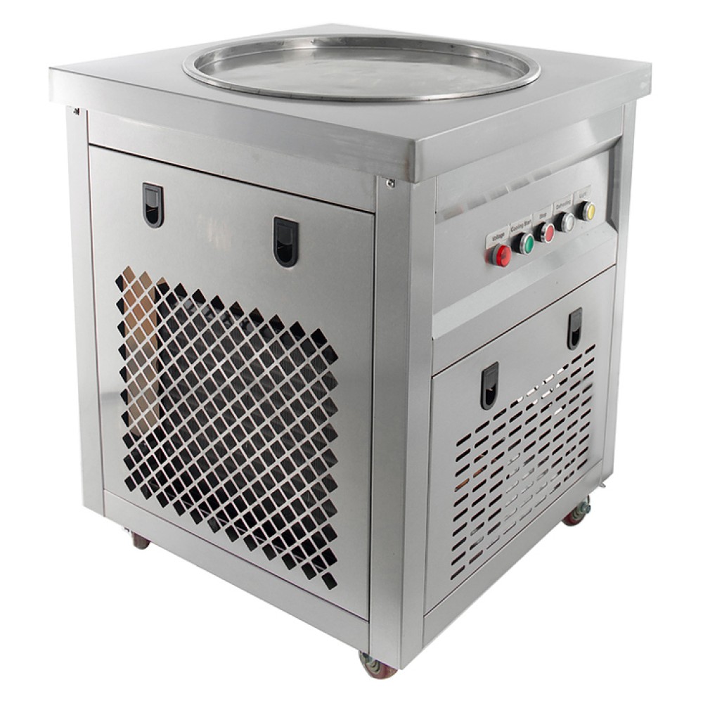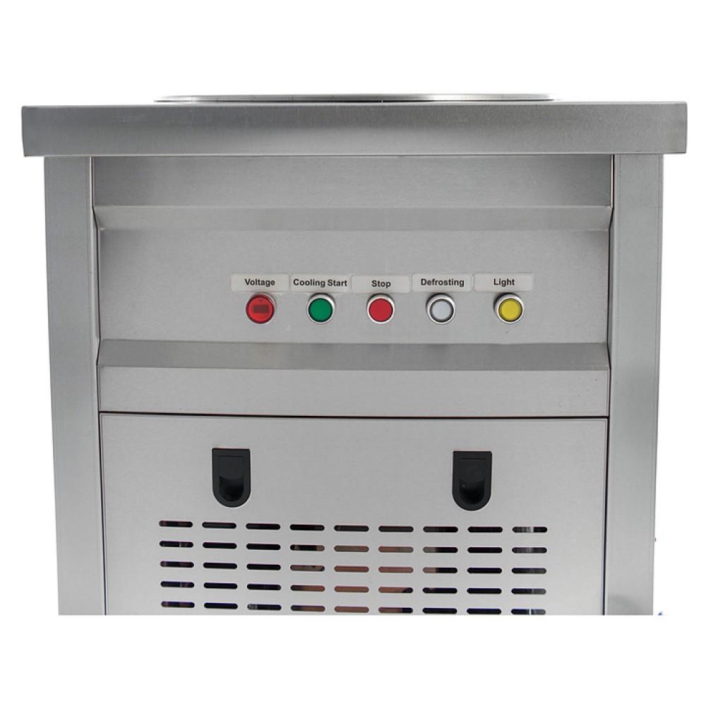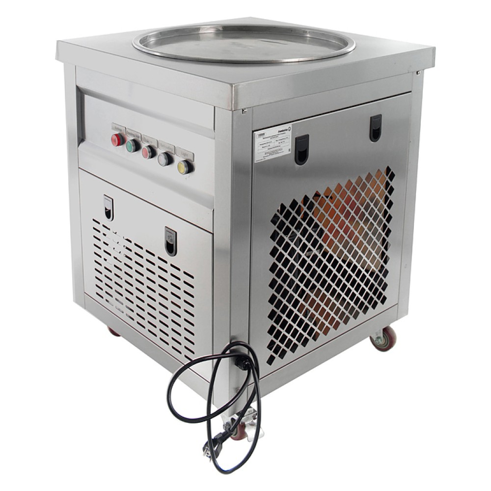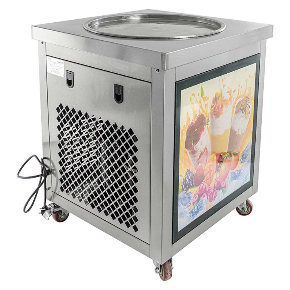 Фризер для мороженого Foodatlas KCD-1Y используется на предприятиях общественного питания и торговли для приготовления жареного мороженого в роллах. Модель оснащена механическим управлением, термоконтроллером световым коробом, круглой охлаждаемой поверхностью для "жарки" десерта при минусовой температуре и 4 колесами, 2 из которых снабжены тормозом. Корпус выполнен из нержавеющей стали 430, сковорода - из нержавеющей стали 304, радиатор - из алюминия, каркас светового короба - из оргстекла, полотно светового короба - из ПВХ.
