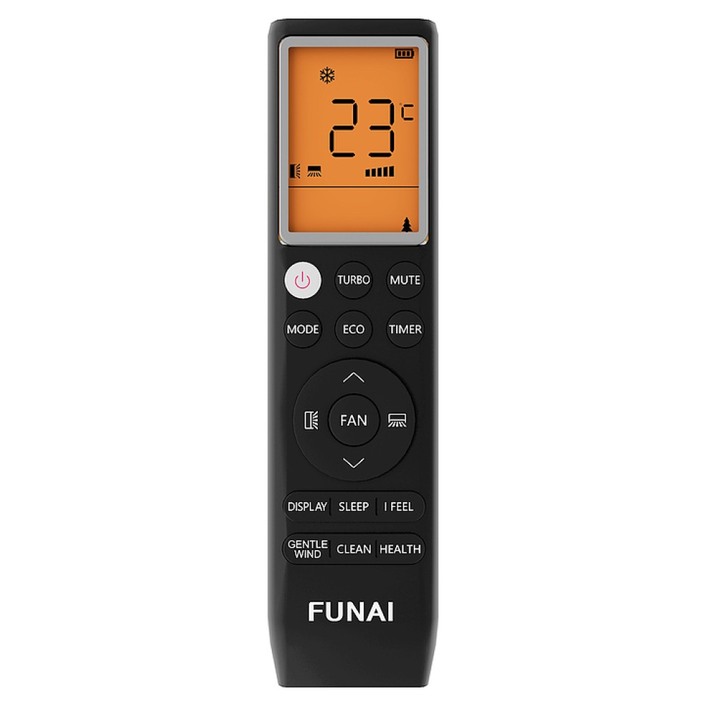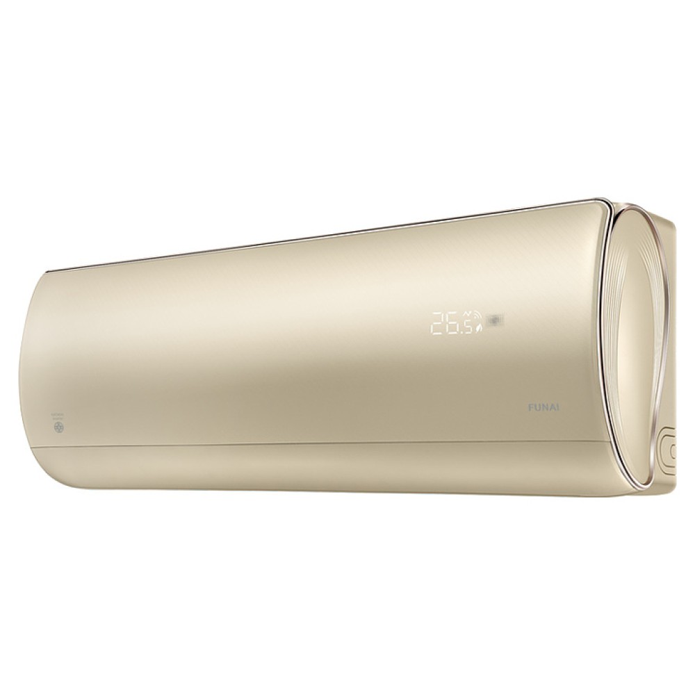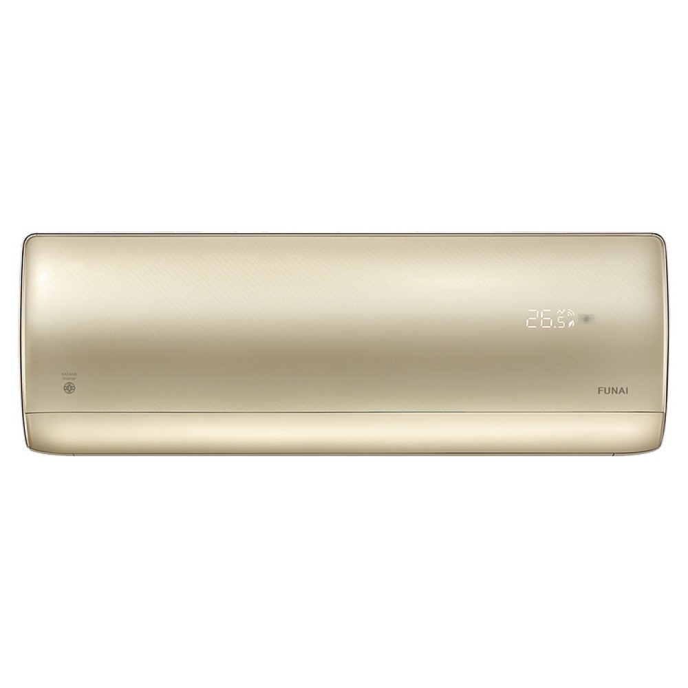 Настенная сплит-система FUNAI KATANA Inverter RAC-I-KT30HP.D01 используется для создания максимально кофмортных условий микроклимата в жилых, офисных и коммерческих помещениях. Модель состоит из внутреннего блока RAC-I-KT30HP.D01/S и наружного блока RAC-I-KT30HP.D01/U. Наружный блок оснащен защитными вентиляционной решеткой и крышкой для вентилей, внутренний блок – воздухозаборной решеткой, откидной фронтальной крышкой, подвижной горизонтальной заслонкой и электронным блоком управления, пульт – информативным жидкокристаллическим дисплеем и кнопочной клавиатурой. Облицовка внутреннего блока выполнена из пластика с поверхностью золотистого цвета, корпус пульта – из ударопрочного черного пластика, теплообменник наружного блока с антикоррозийным покрытием Golden Fin.