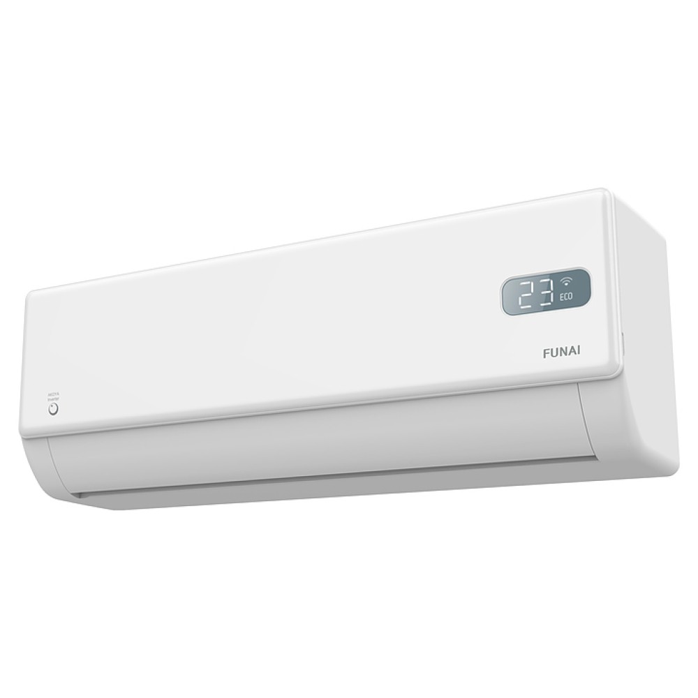 Настенная сплит-система FUNAI RAC-I-AK75HP.D01 серии AKOYA Inverter используется для создания максимально кофмортных условий микроклимата в жилых, офисных и коммерческих помещениях. Модель состоит из внутреннего блока RAC-I-AK75HP.D01/S и наружного блока RAC-I-AK75HP.D01/U. Наружный блок оснащен теплообменником, 3-лопастным вентилятором, защитными вентиляционной решеткой и крышкой для сервисных вентилей, внутренний блок – воздухозаборной решеткой, откидной лицевой панелью, подвижными горизонтальными и вертикальными жалюзи, электронным блоком управления и светодиодным дисплеем, пульт – информативным жидкокристаллическим дисплеем с подсветкой и кнопочной клавиатурой. Облицовка внутреннего блока выполнена из пластика с поверхностью белого цвета, корпус пульта – из ударопрочного черного пластика.