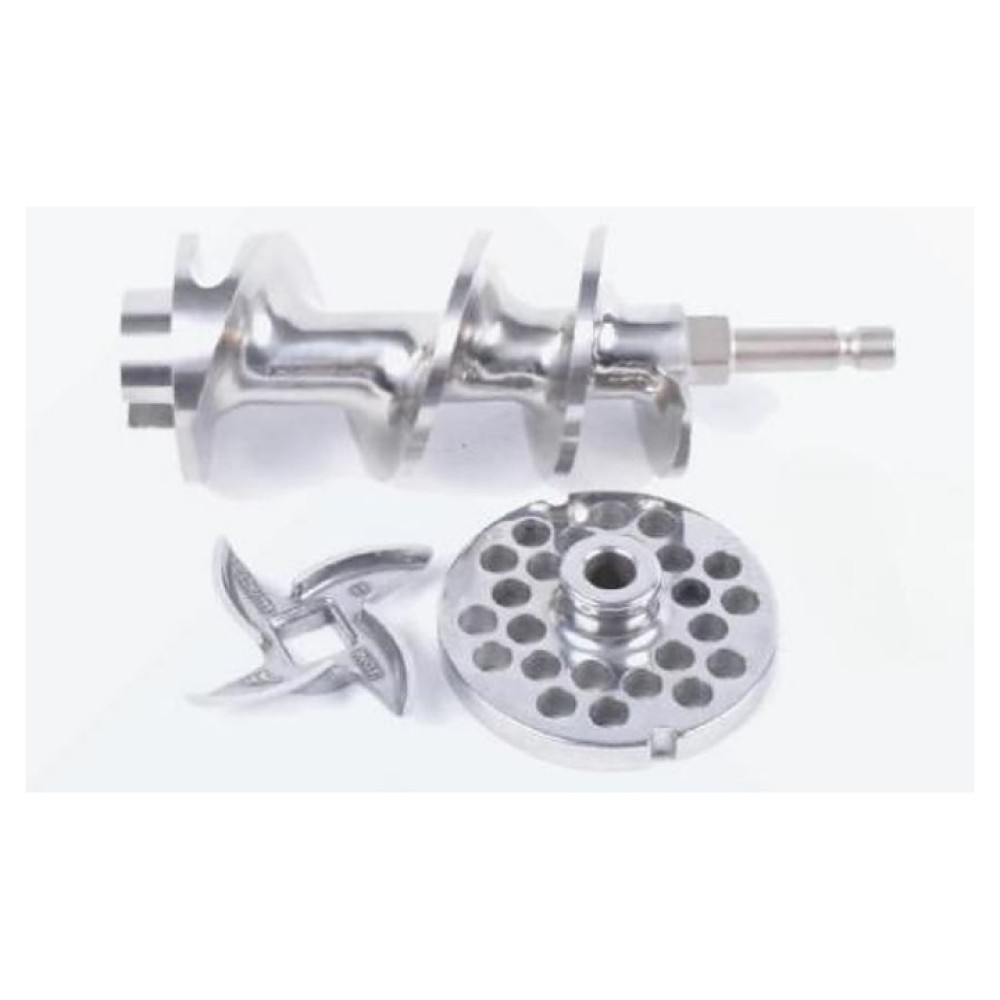 В комплект поставки входят загрузочный лоток из нержавеющей стали, толкатель, насадка для купат 20 мм, 2 ножа и 2 решетки: 5 и 7 мм.