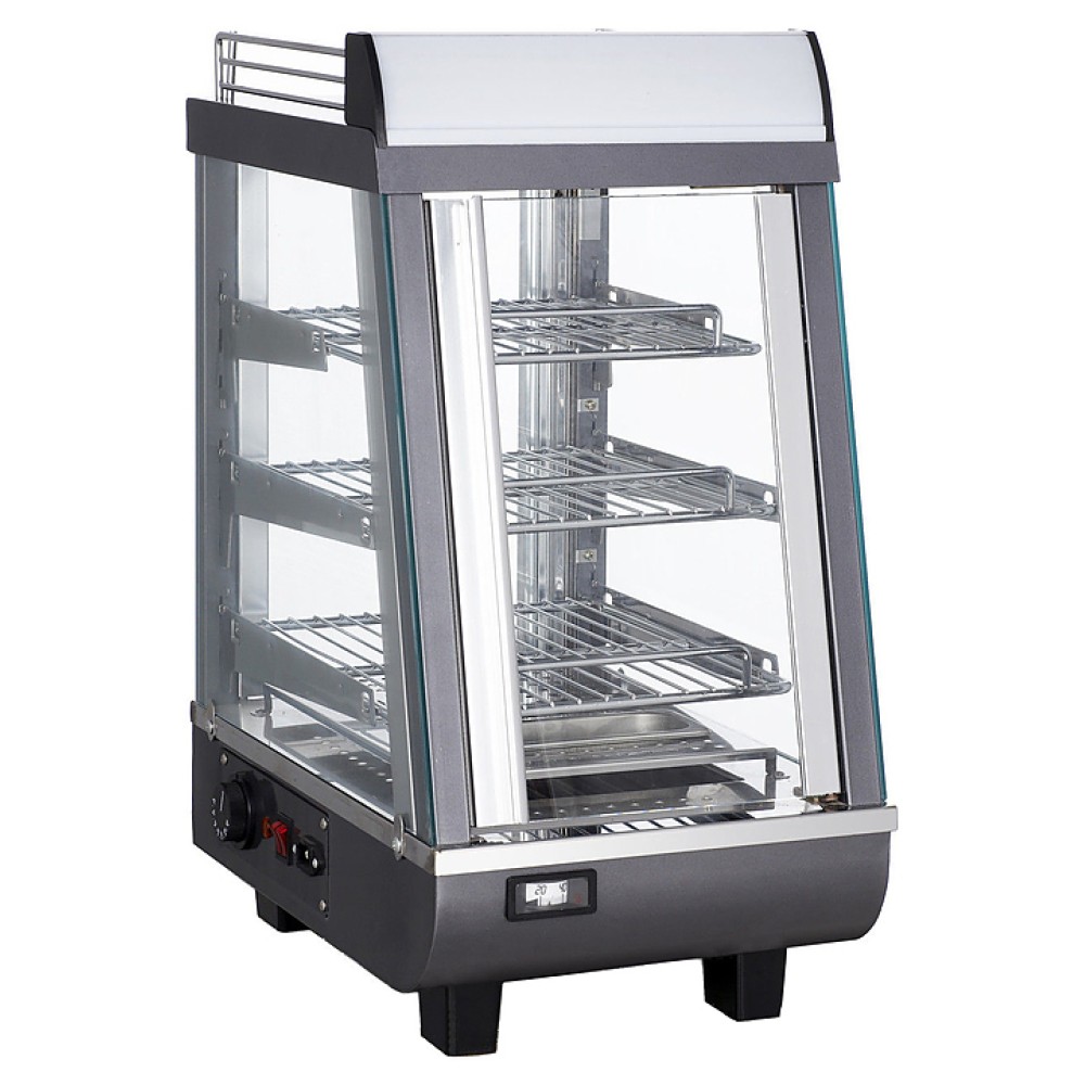 Тепловая витрина GASTRORAG RTR-76L предназначена для демонстрации, подогрева и кратковременного хранения пиццы, булочек, пирогов, различных закусок и т.д. на предприятиях общественного питания и торговли. Модель оснащена функцией увлажнения (испарение воды из ванны), раздвижными дверцами спереди и сзади, подсветкой и 3 полками-решетками. Корпус выполнен из стали, окрашенной в черный цвет.