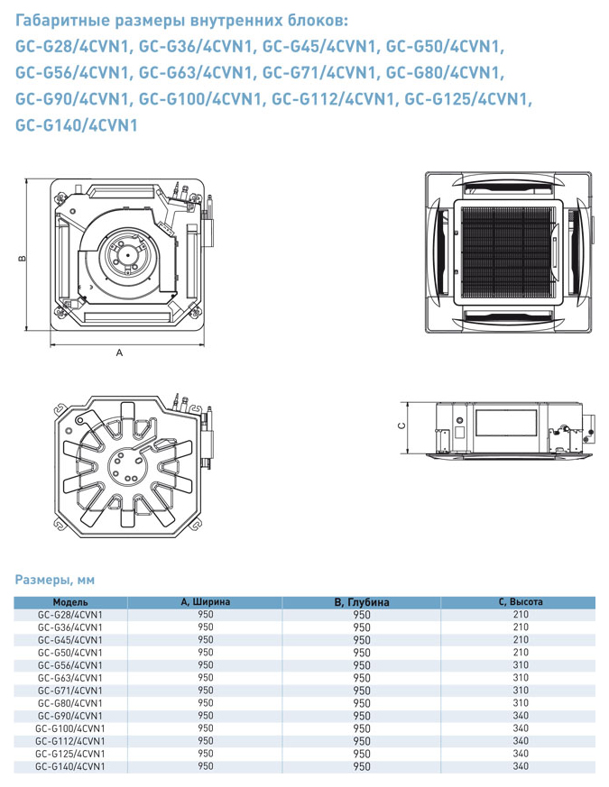 Внутренний блок мультизональной системы General Climate GC-G140/4CVN1 используется в офисах, торговых центрах и других больших помещениях со сложной архитектурой для охлаждения и нагревания воздуха. Модель оснащена панелью GC-T01.