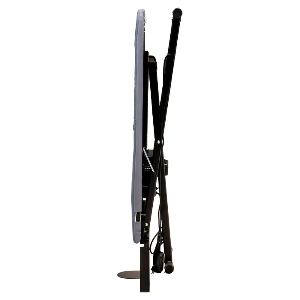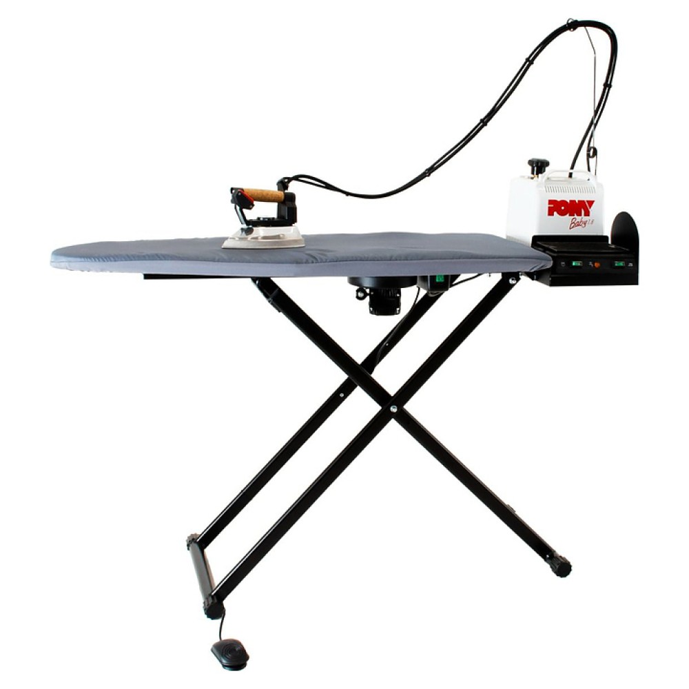 Гладильный стол PONY Omega Pro используется в домах, ателье, прачечных и химчистках с небольшой площадью помещения для глажки белья и одежды. Модель оснащена ножной педалью управления мощностью вентилятора, 12 позициями настройки высоты и штырем для механической блокировки.