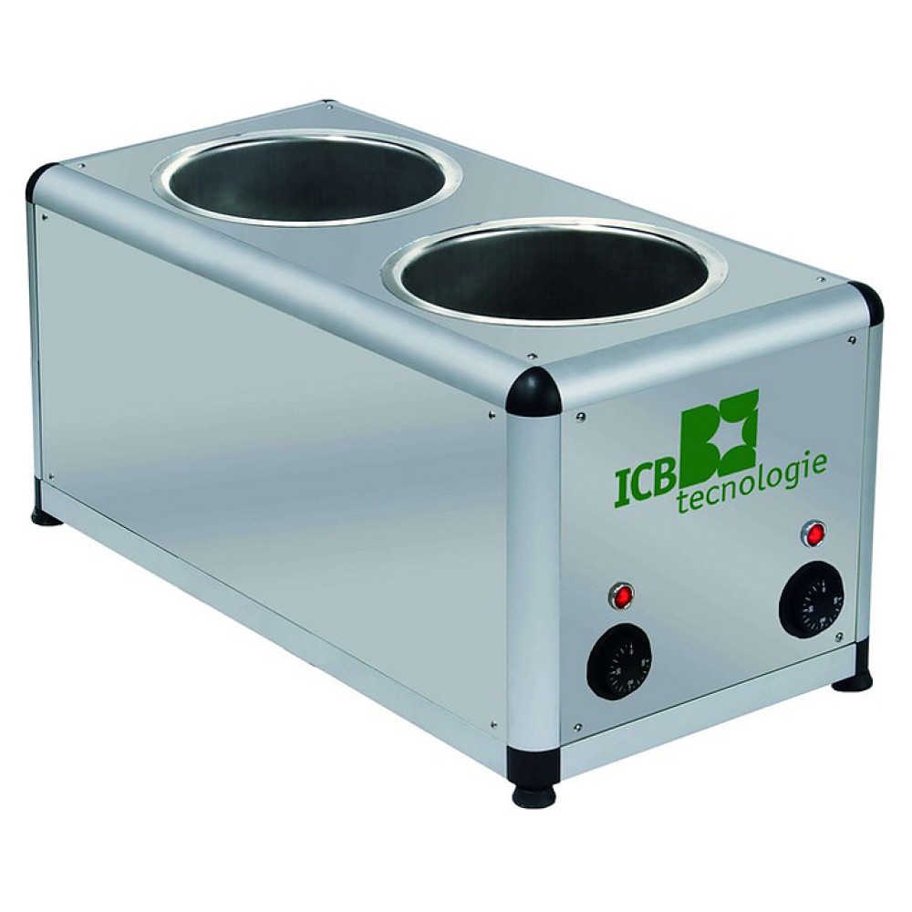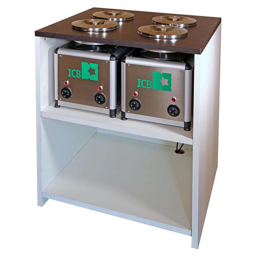 Глазуратор мороженого ICB tecnlologie s.r.l. 09.CP2 предназначен для плавления и поддержания в горячем состоянии шоколада и глазури на предприятиях общественного питания и торговли. Модель оборудована 2 съемными ваннами, аналоговым термостатом, сухой системой нагрева дна и сторон контейнера для поддержания единой температуры. Корпус выполнен из нержавеющей стали.